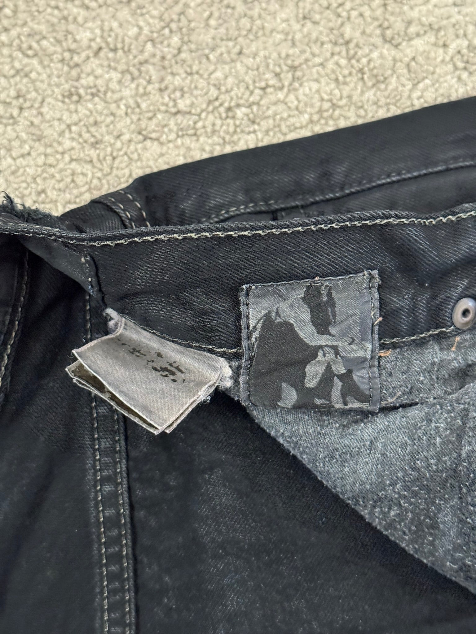 2000s Rick Owens DRKSHDW Black Waxed Detroit Denim Jeans