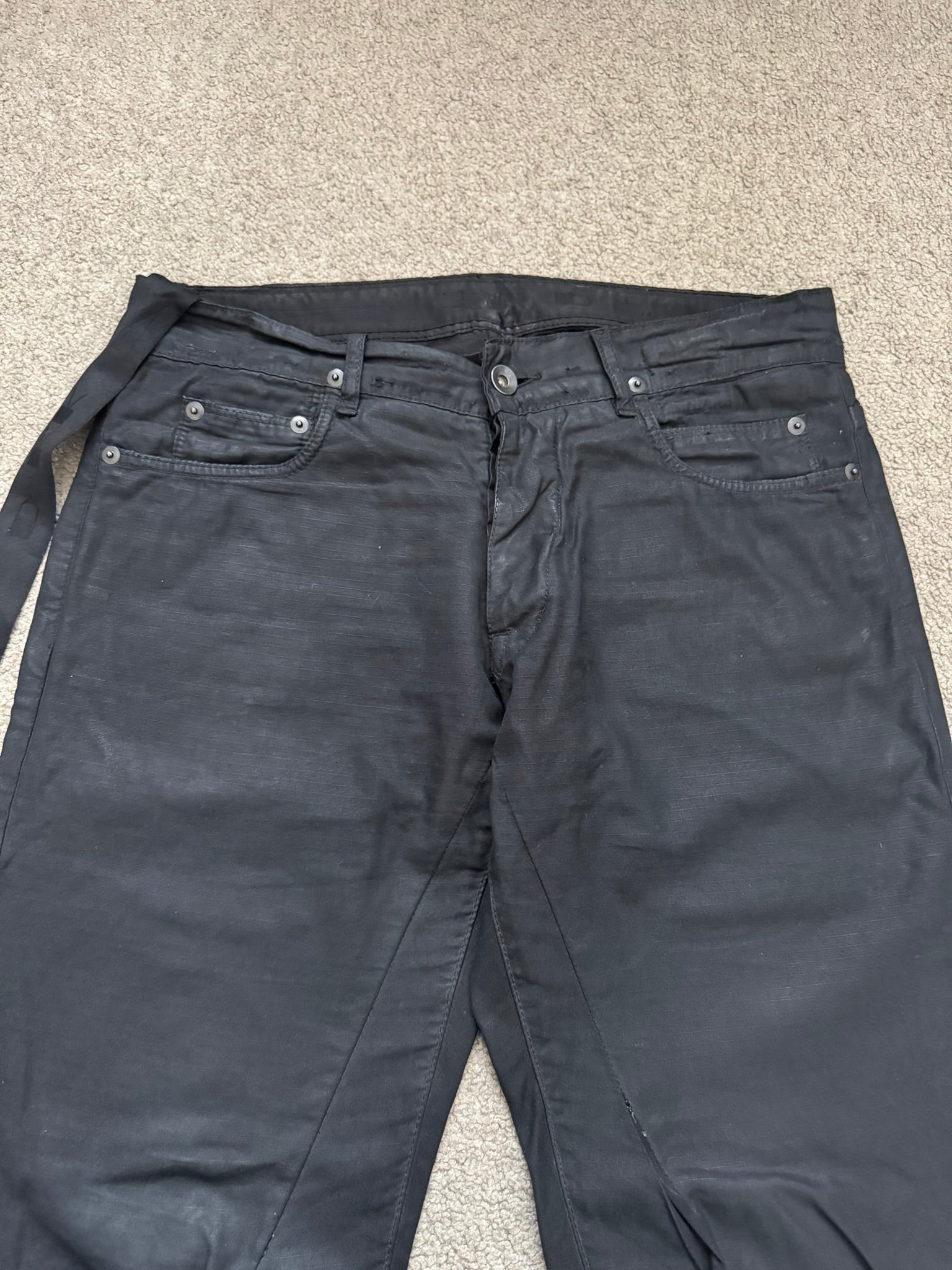 2010s Rick Owens DRKSHDW Black Waxed Ripstop Detroit Pants