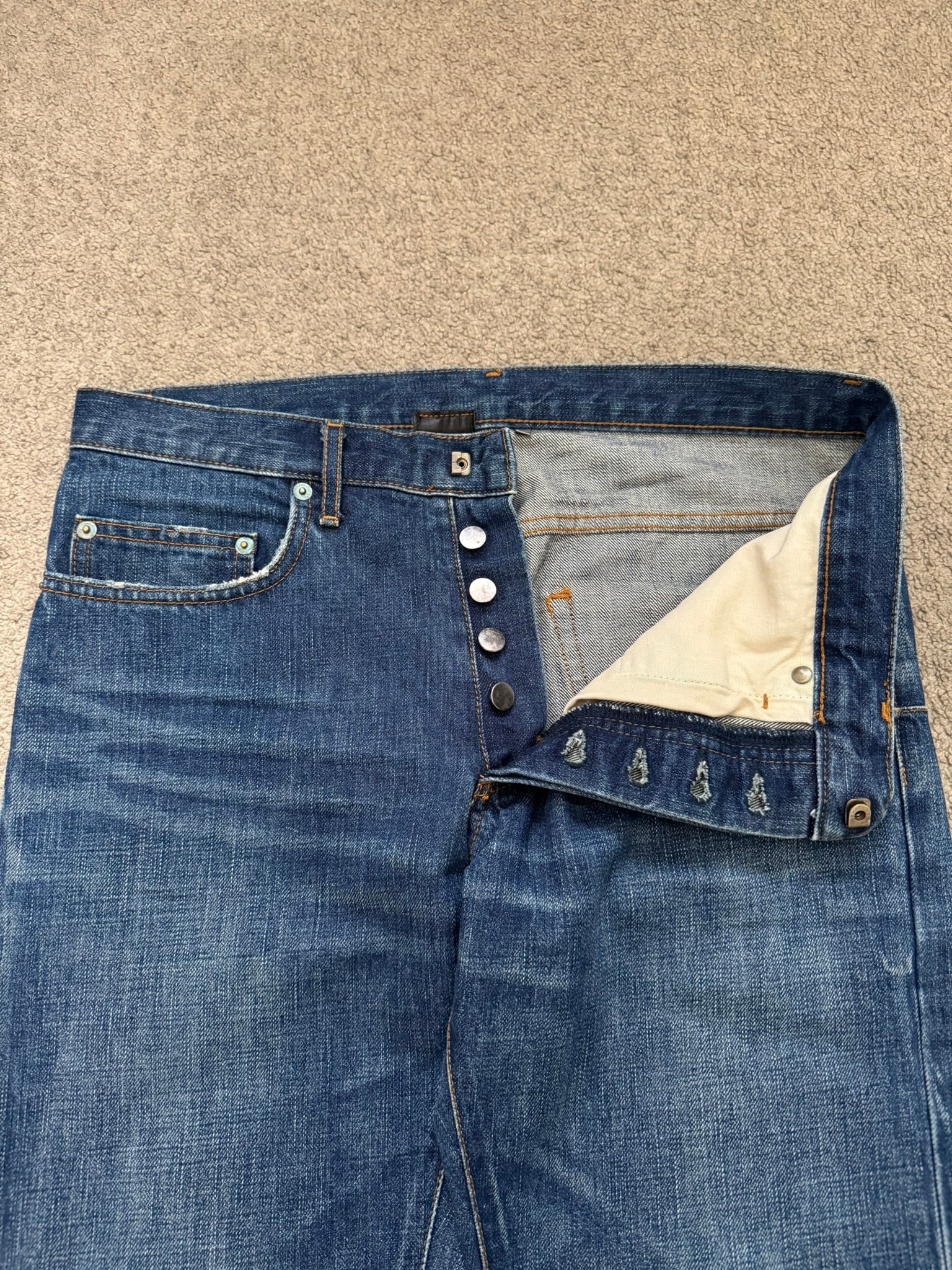 AW06 Dior Homme by Hedi Slimane MIJ Clawmark Blue Washed Denim Jeans