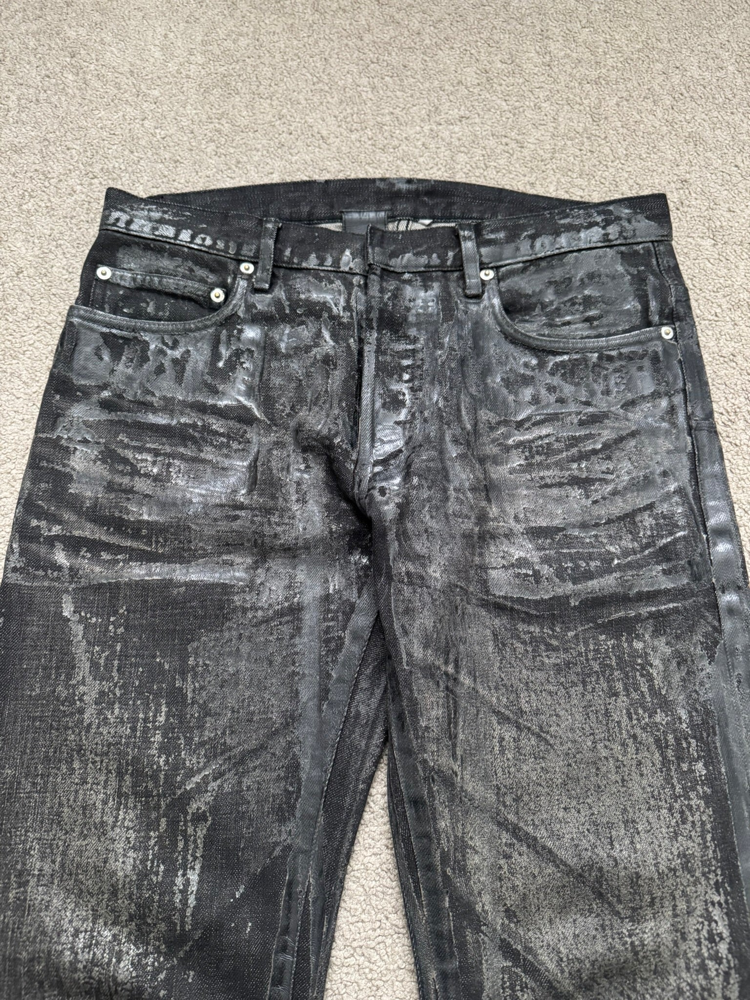 AW08 Dior Homme “Luster” Black Waxed Clawmark Denim Jeans