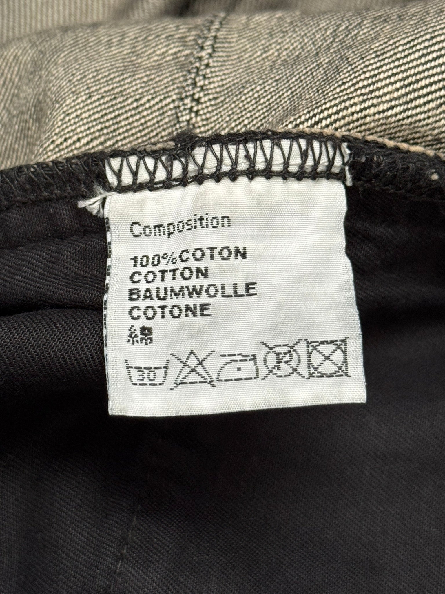 From the Dior Homme line originally created by Hedi Slimane and the AW08 collection by Kris Van Assche titled "Lumiere Du Nord." These reissue faded black denim jeans feature a special sporadic wax coating throughout (first featured in their AW03 “Luster” collection, hence the name), the iconic clawmark distressing detail on one of the knees, a button and hook fly, 5 pocket design, CD silverware on back beltloop, darting details on back pockets, and released hems. Jeans are still very waxy. In good condition, no real flaws besides small tear on one of the knees and tiny hole near hem. Made in Japan. Tagged a size 30.
