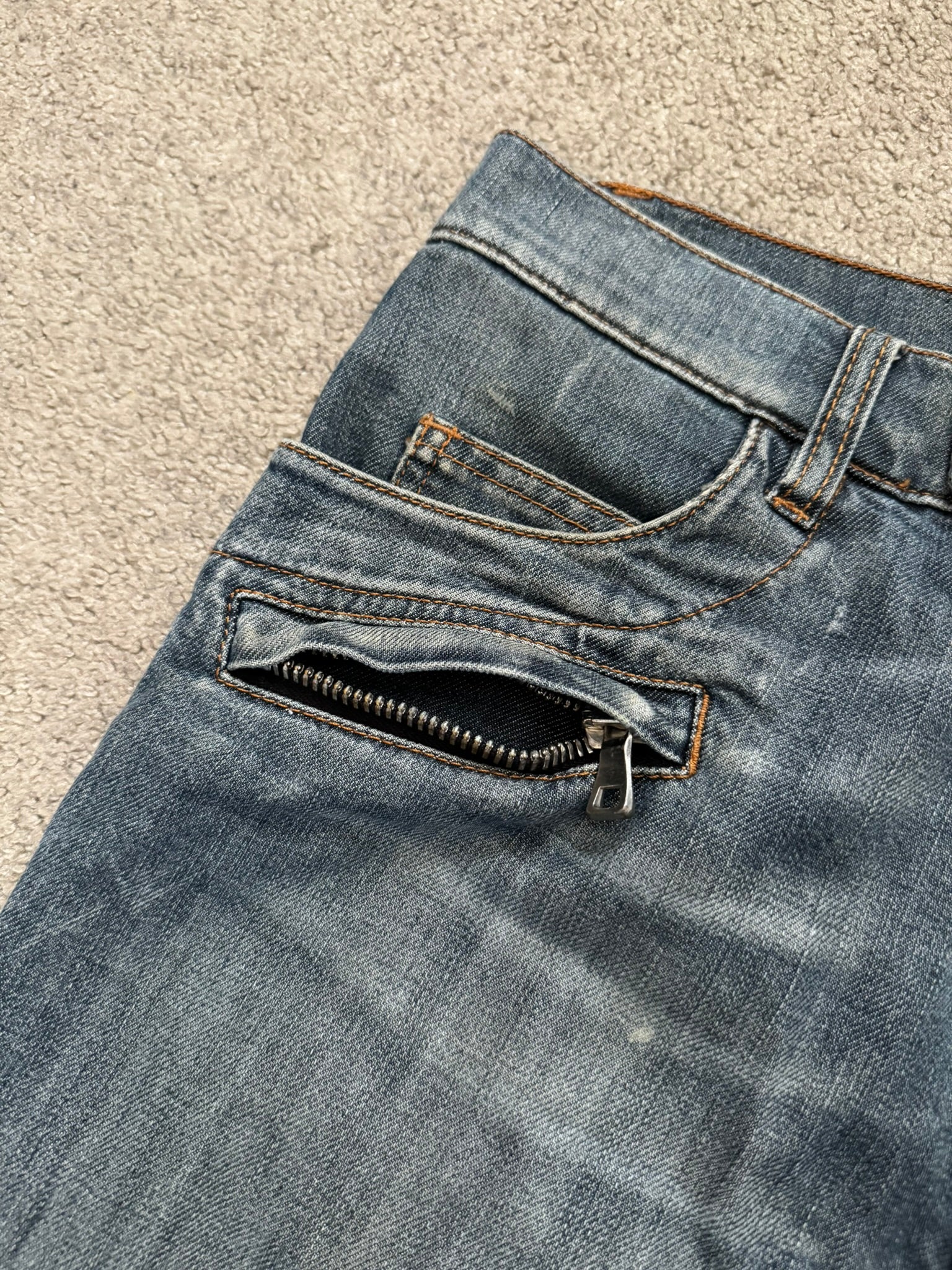 Balmain by Christophe Decarnin Faded Zip Biker Denim Jeans