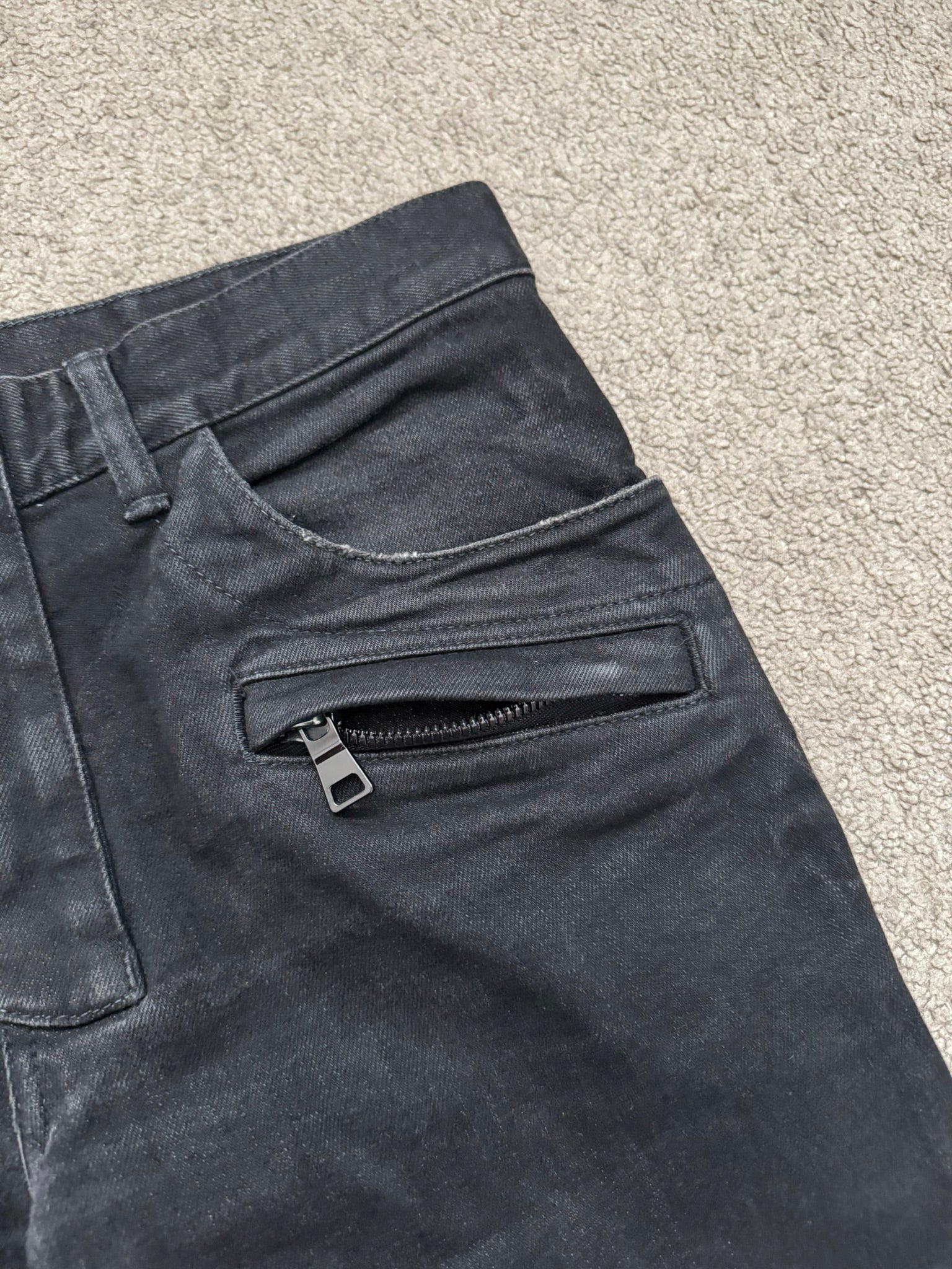Balmain by Olivier Rousteing Black Waxed Zip Biker Denim Jeans