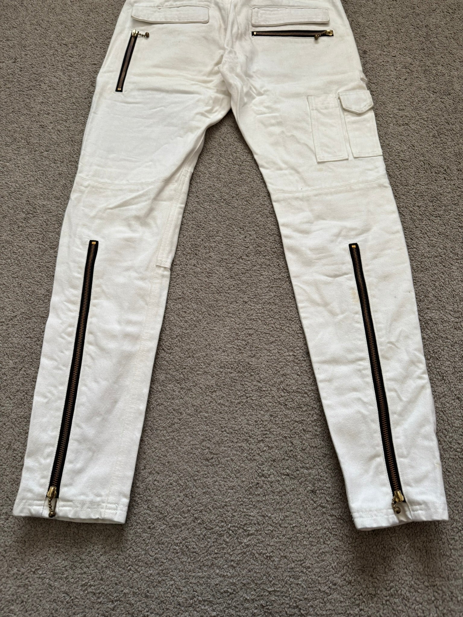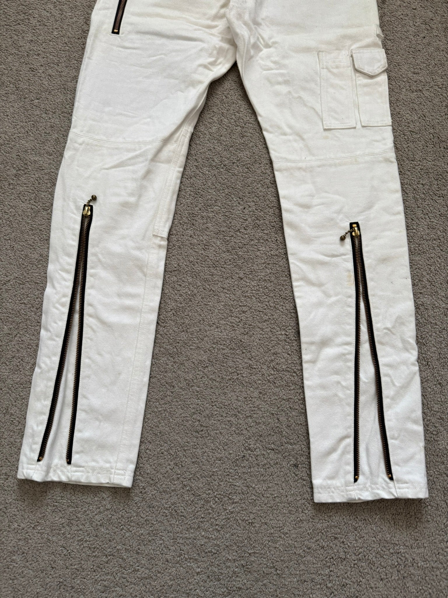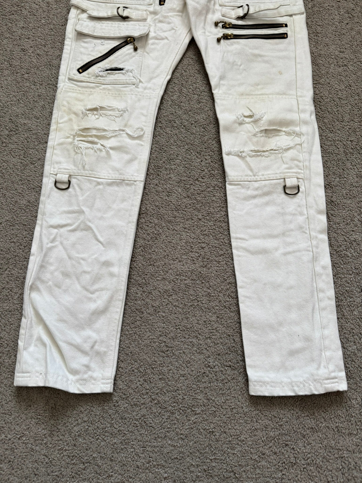 Blackmeans White Zipper Cargo Bondage Biker Denim Jeans