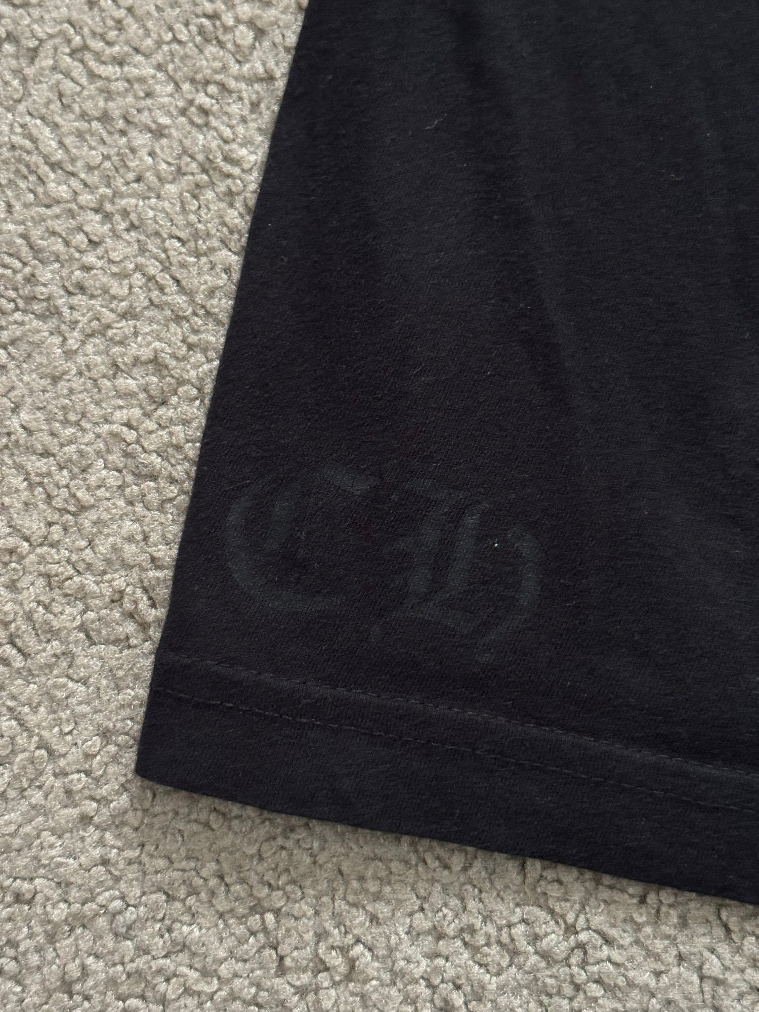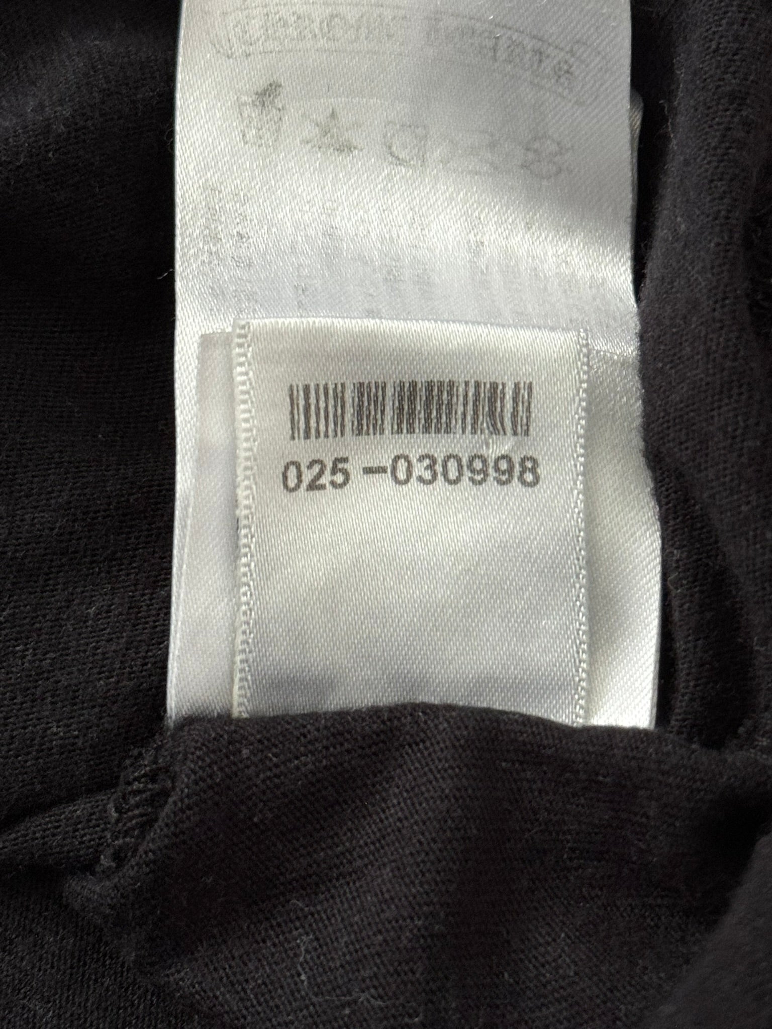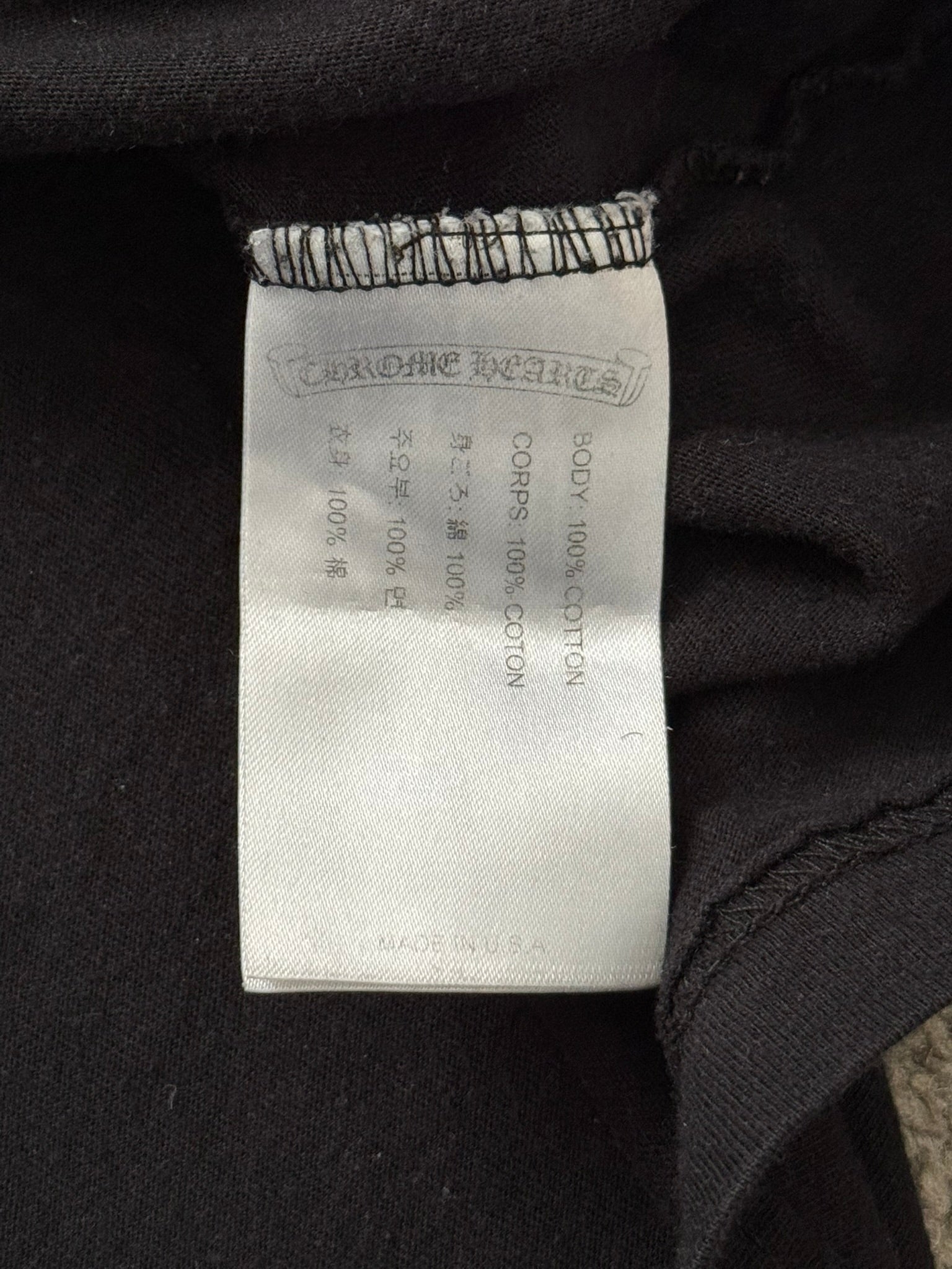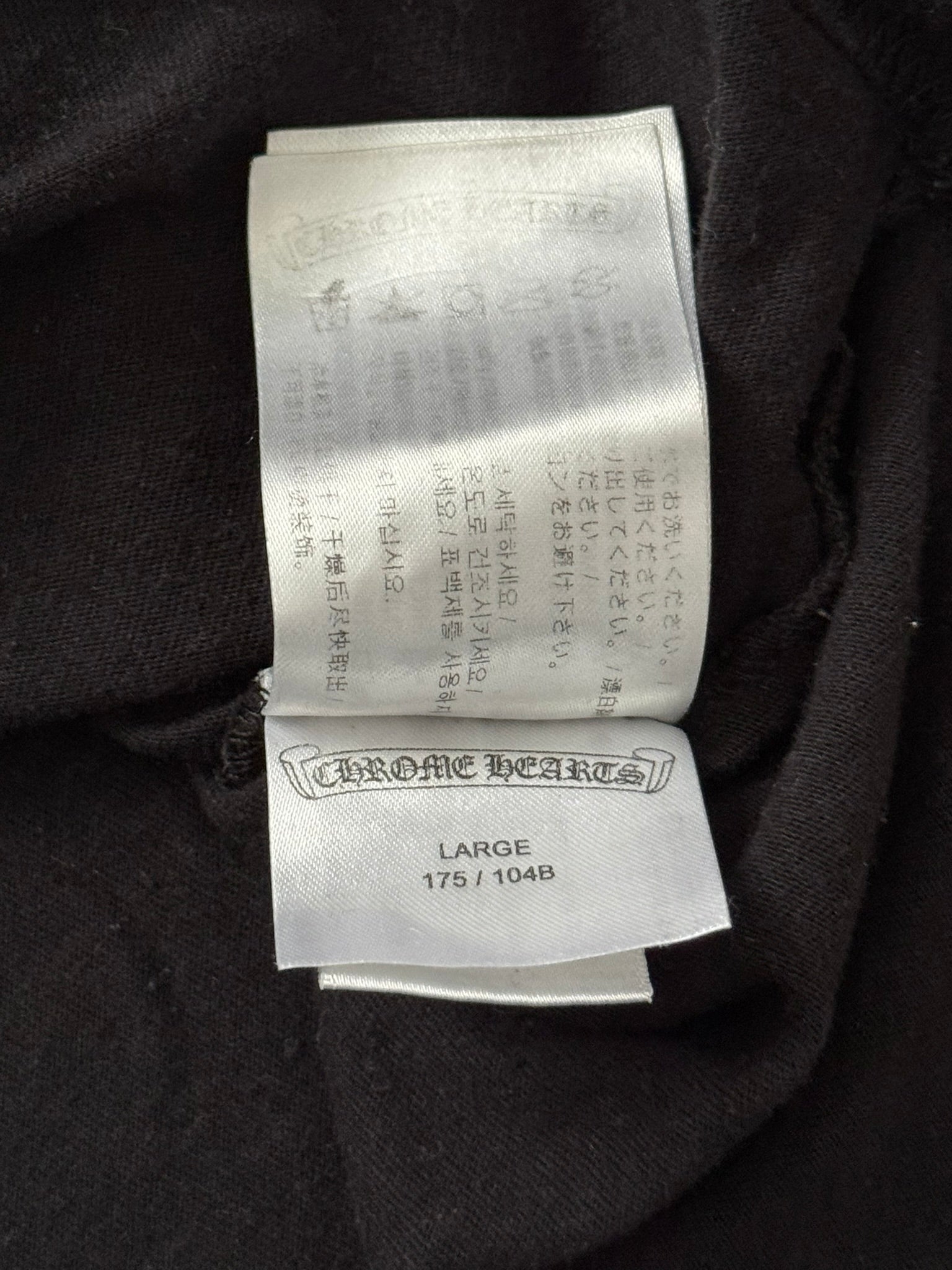 From iconic American leather & silver brand Chrome Hearts ran by Richard Stark and his family. This all black tee features a chest pocket with their iconic scroll logo over their vine dagger motif in red, tonal black CH at the bottom hem, another vine dagger on sleeve, and two more scroll logos printed on the back underneath a big vine dagger. In great condition, no real flaws. Made in the USA. Tagged a size large.