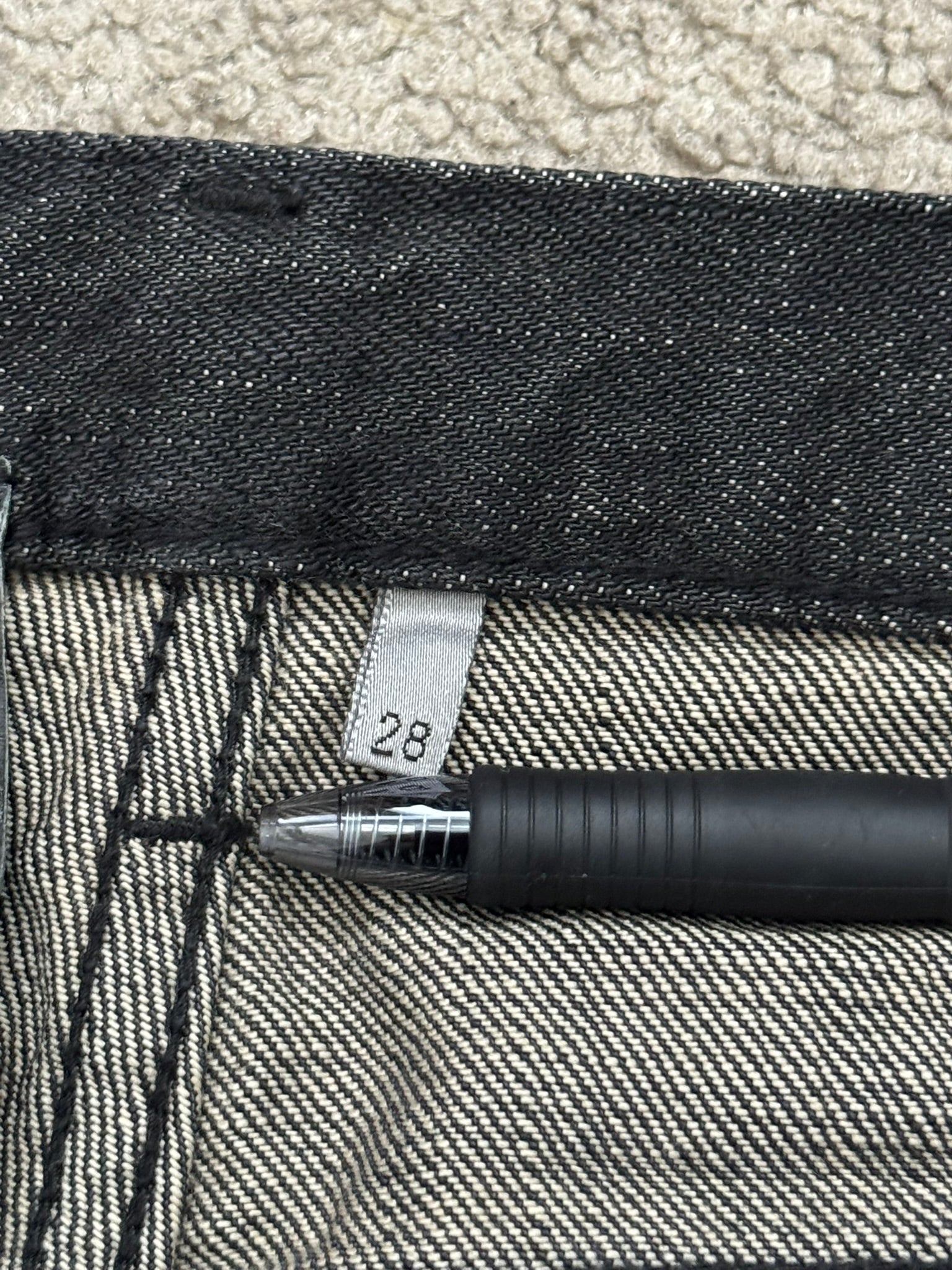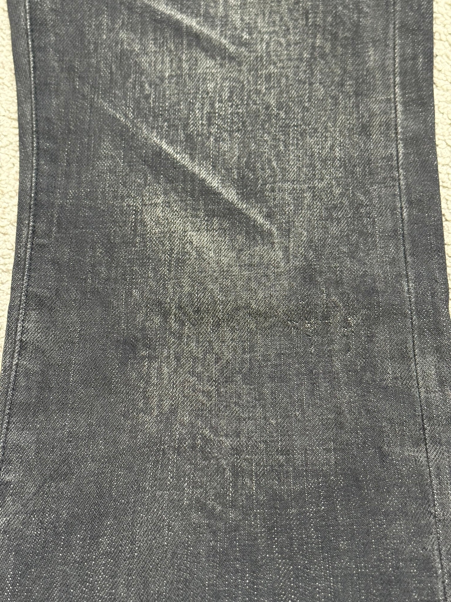 From Hedi Slimane's tenure at Dior Homme. These beautiful faded denim jeans in a black/gray wash feature the iconic clawmark distressing detail on one of the knees, a button and hook fly, 5 pocket design, CD silverware on back beltloop, darting details on back pockets, and a Dior leather tag on the inside. Full length, has not been hemmed like most pairs and are becoming harder to come by. In great condition, no real flaws. Made in Japan. Tagged a size 28.