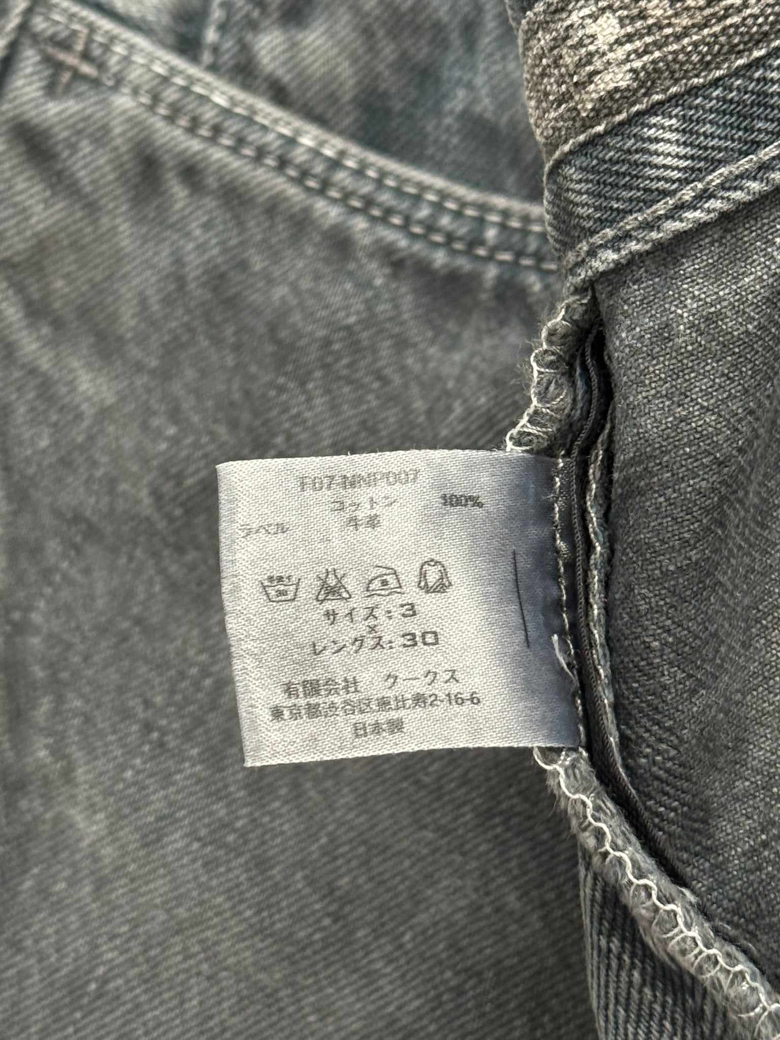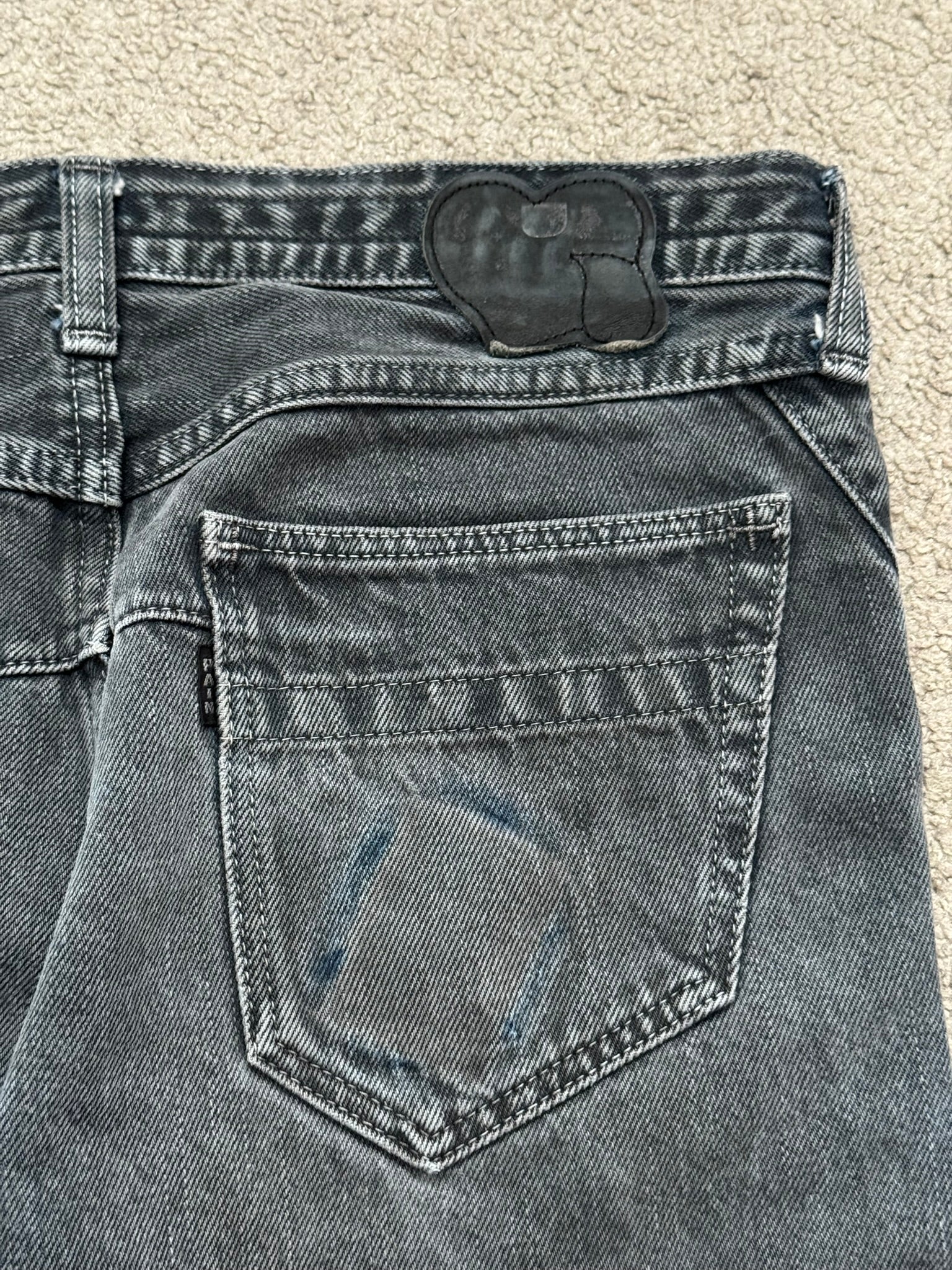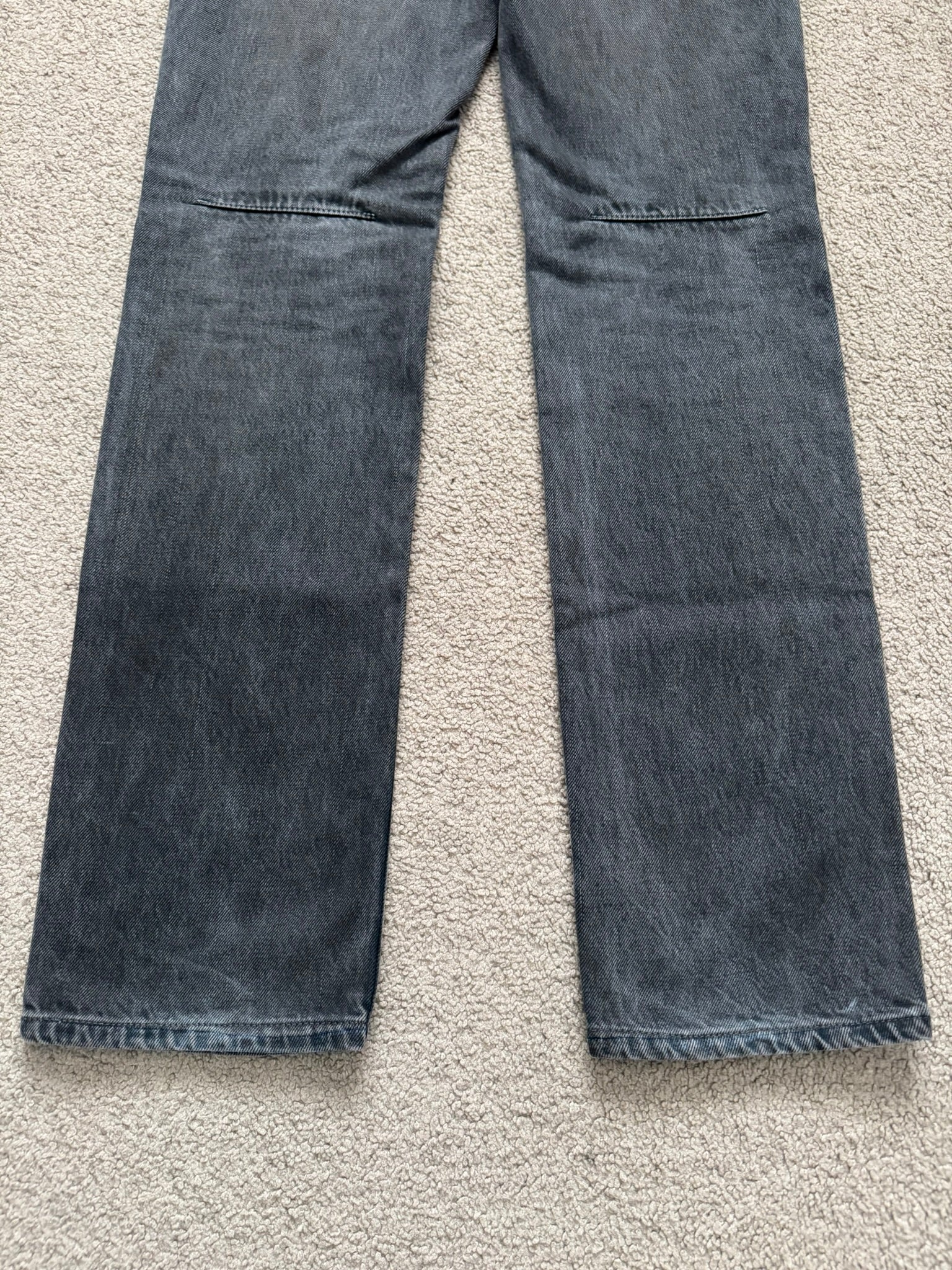 From Takahiro Miyashita's Number (N)ine and their FW07 collection titled "'Love, God, Murder." These rare and unique denim jeans in a special mud wash color features slight distressing throughout, darting details, the iconic "PAIN" text tab & crying heart leather patch on the back, and a RiRi zipper + button closure. In great condition, all fading and wear is intentional; no other real flaws. Made in Japan. Tagged a size JP 3 x 30.