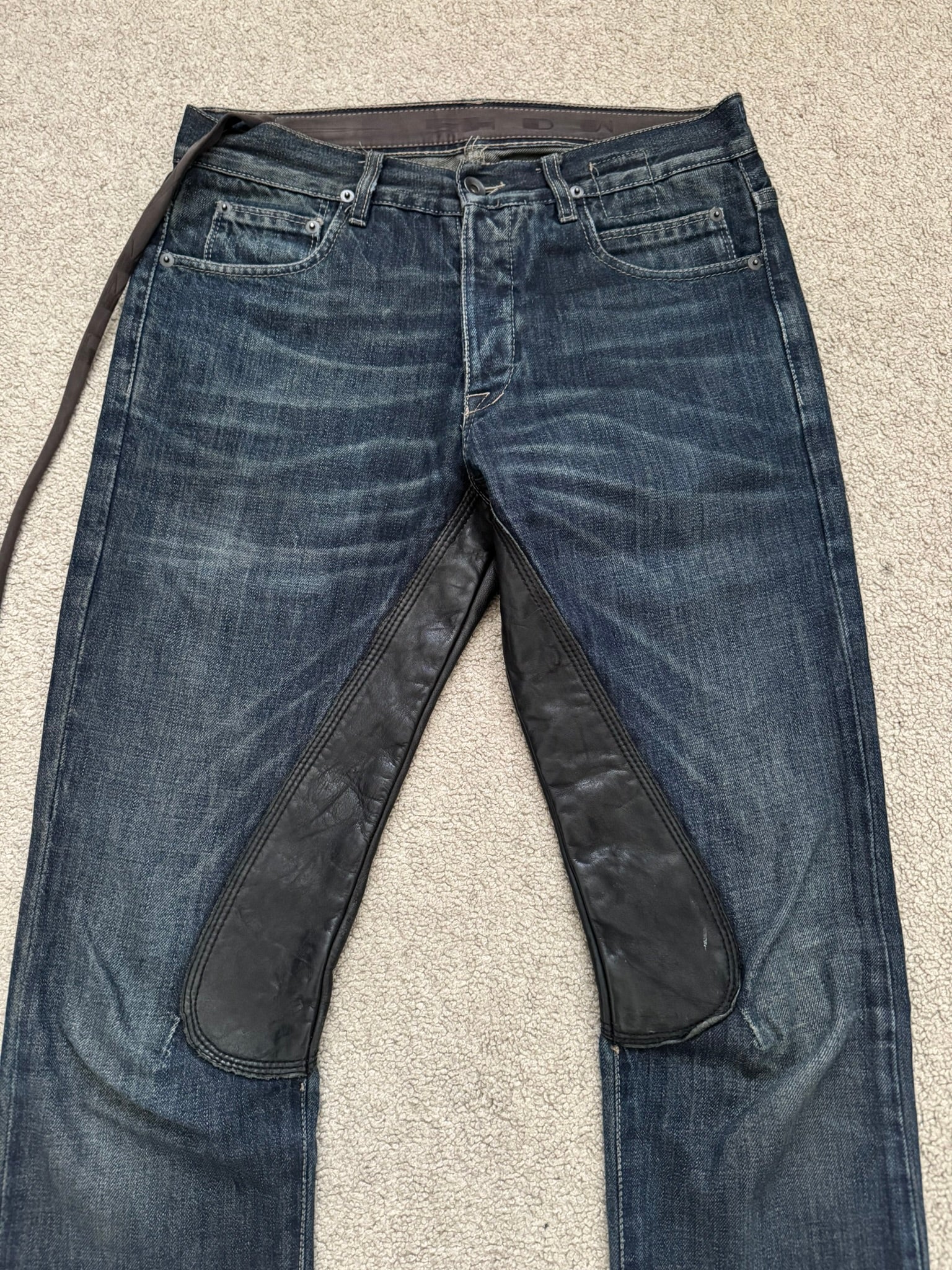 FW09 Rick Owens DRKSHDW Leather Panel Detroit Denim Jeans