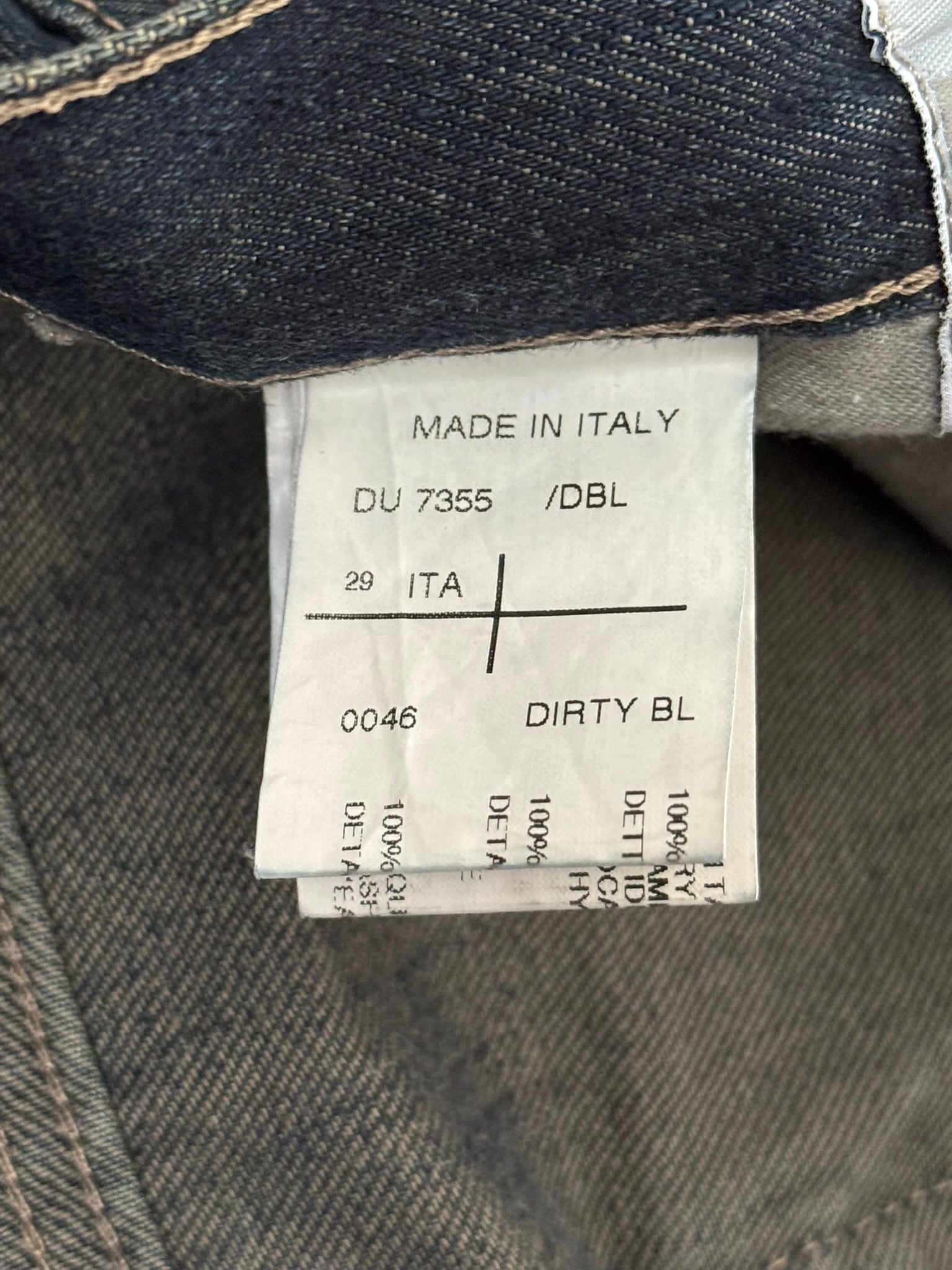 From Rick Owens’s DRKSHDW line and his FW09 collection titled "Crust." These slim dirty blue "Detroit" cut denim jeans, made prior to 2013 with the old Olmar & Mirta tags, features fading & distressing throughout, six pocket construction, darting details at the front with calf leather panels, raw hems, a button fly, and the classic DRKSHDW tail. In great condition, no real flaws as all wear is purposeful. Made in Italy. Tagged a size 29.