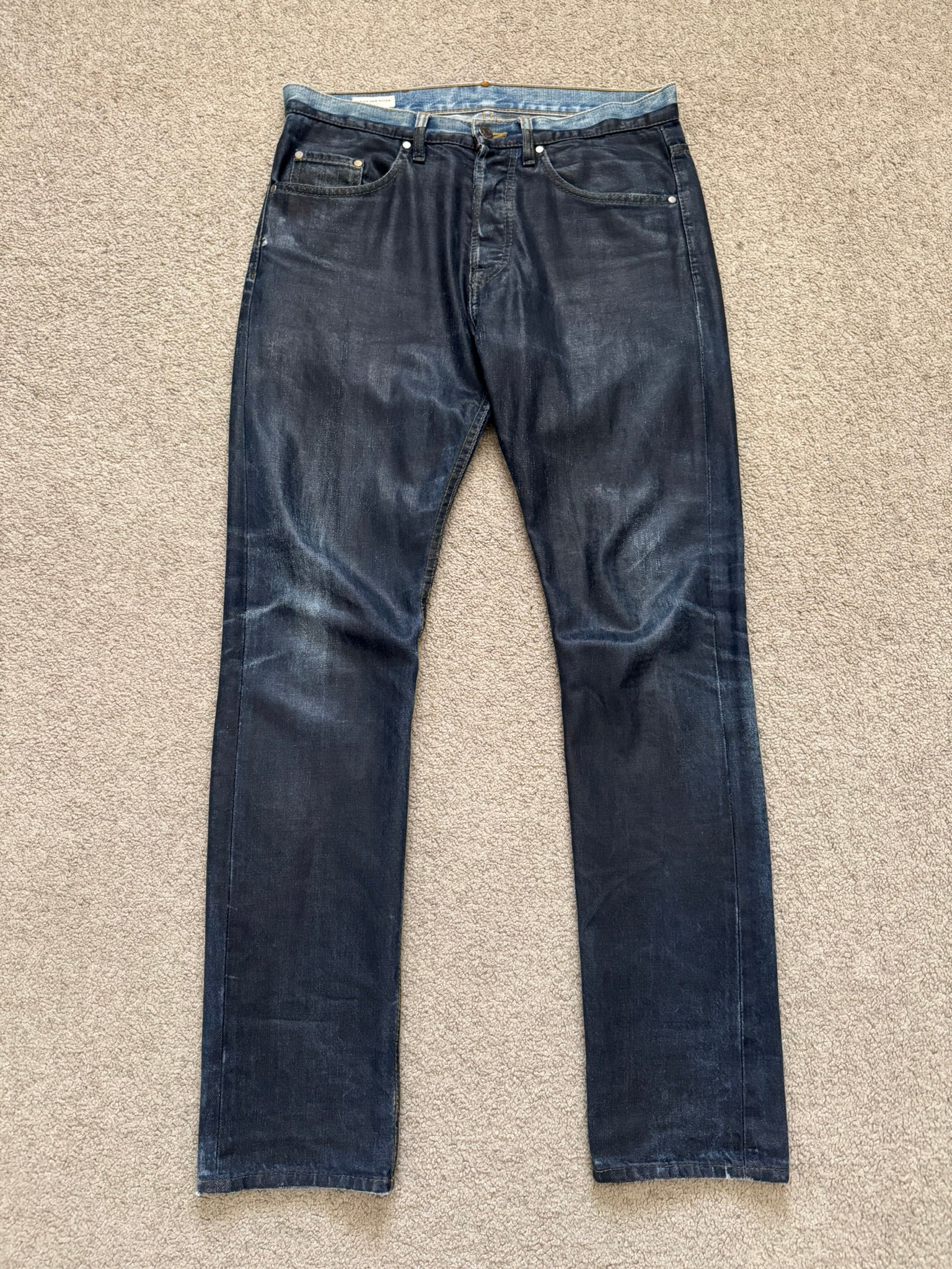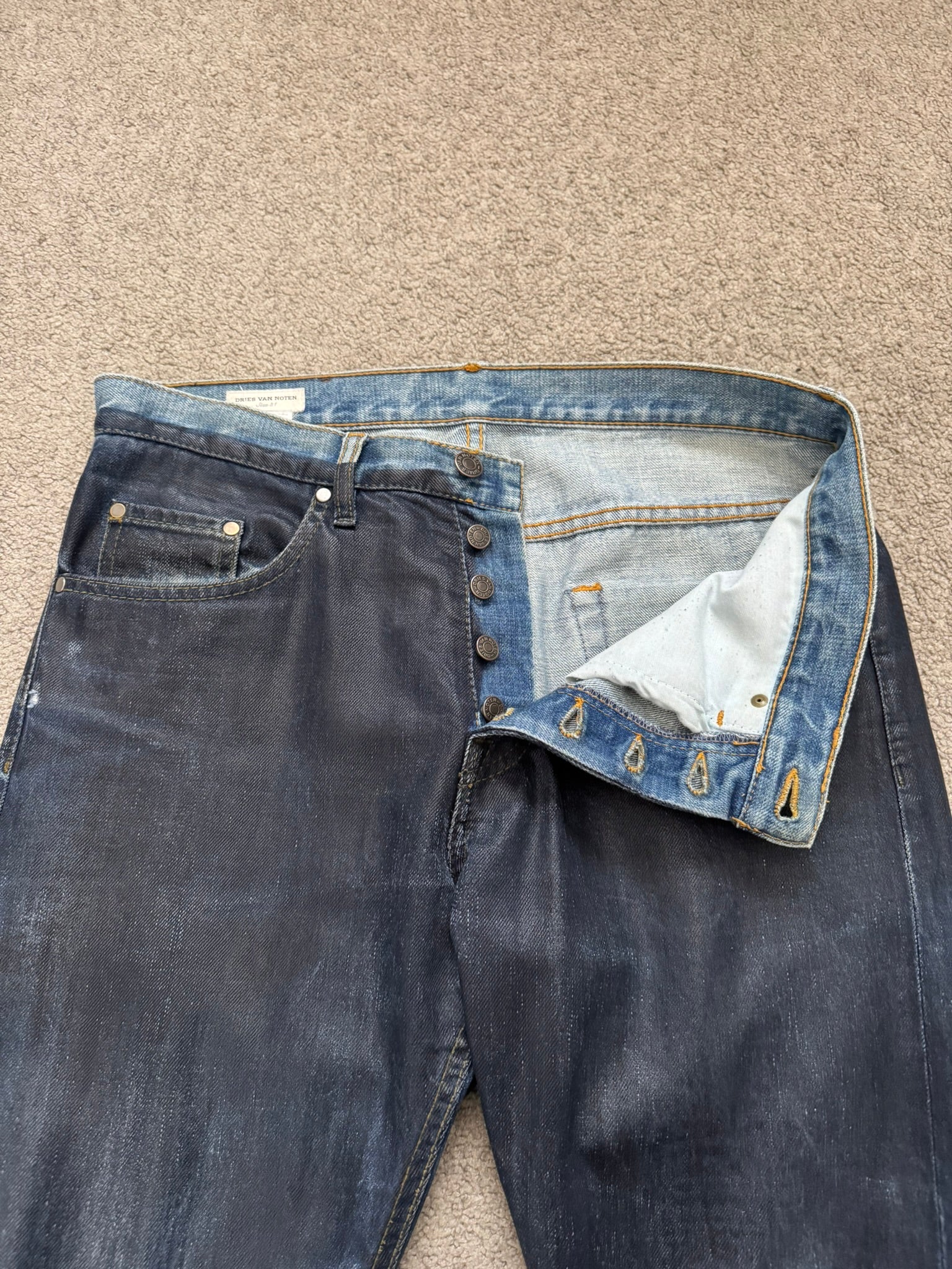 FW12 Dries Van Noten Runway "Cummerbund" Waxed Denim Jeans
