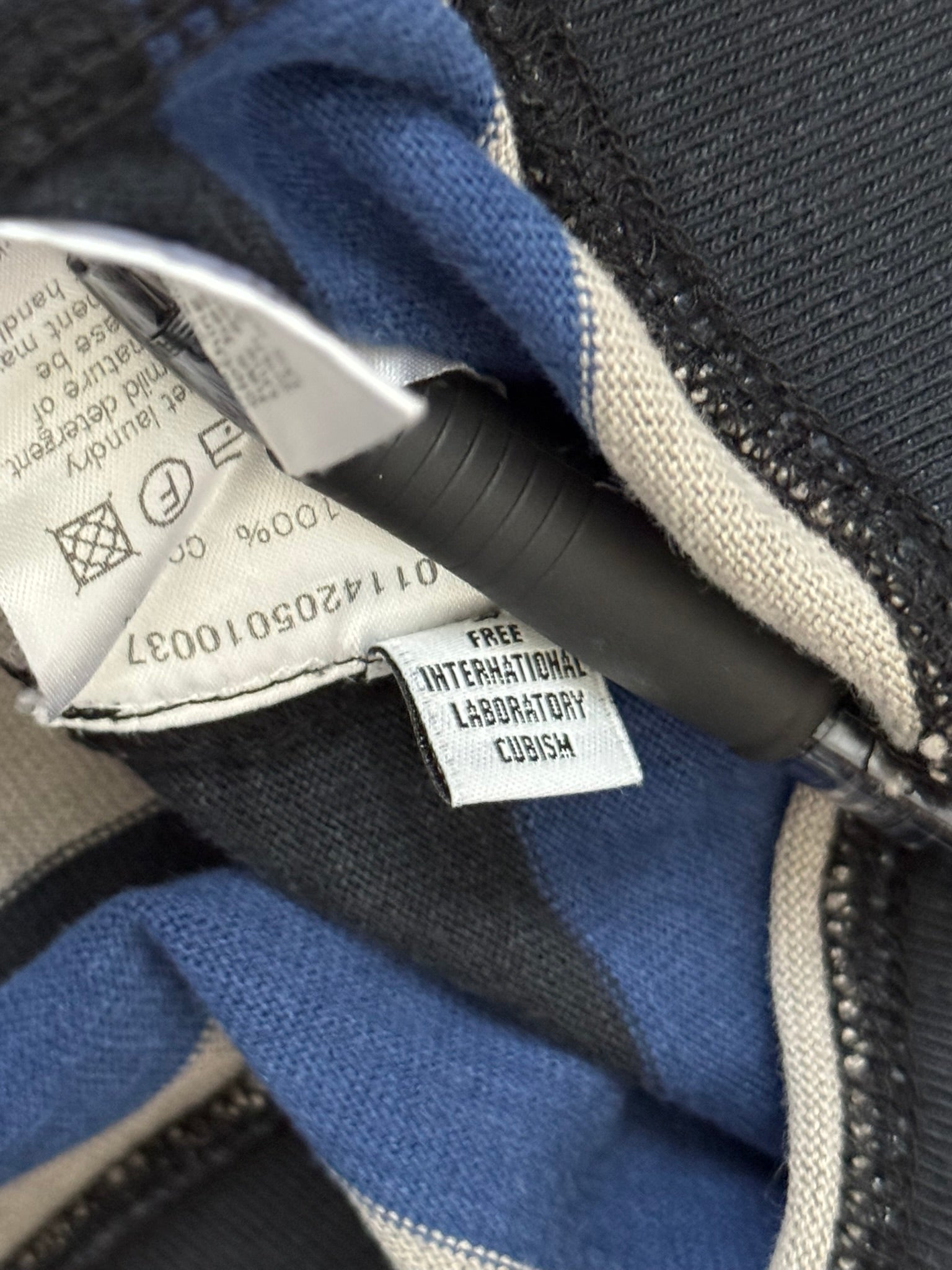 From cult Japanese Americana brand Visvim by Hiroki Nakamura and their FW14 mainline collection. This beautiful high quality midweight 100% cotton pullover hoodie feature thick blue, black, & white stripes throughout, a kangaroo pocket, and their box stitch neck logo used during that season. In great condition, no real flaws. Made in Japan. Tagged a size JP 2.