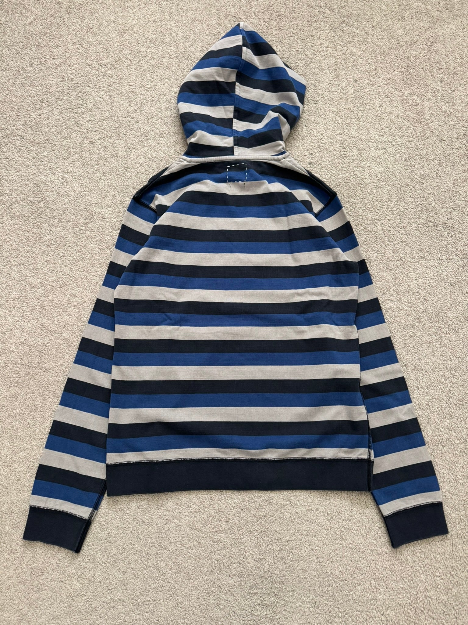 FW14 Visvim Blue/Black/White Striped Pullover Hoodie
