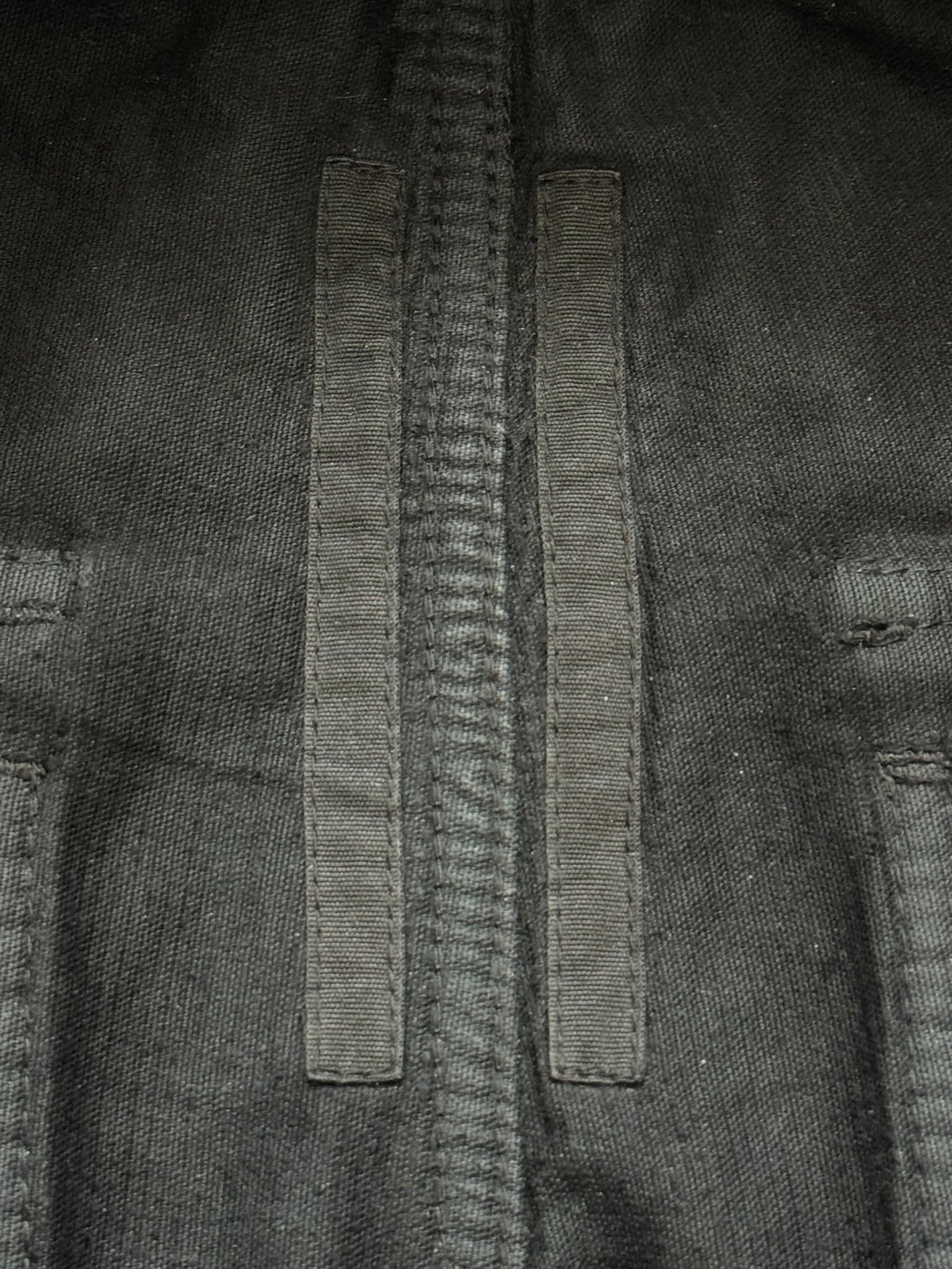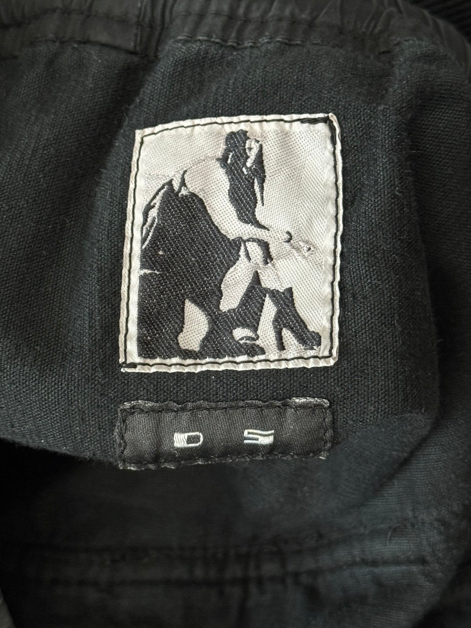 From Rick Owens’s DRKSHDW line and his FW15 collection titled “Sphinx.” These black “Creatch” cargo pants made from their cotton corduroy fabric features an elasticated waistband that can be adjusted by its elongated drawstrings, two front pockets, two front cargo pockets with Velcro closures, and two back Velcro flap pockets. In great condition, no real flaws besides minor tears at waistband. Made in Italy. Tagged a size small, fits many sizes. Waist is measured at untightened state.