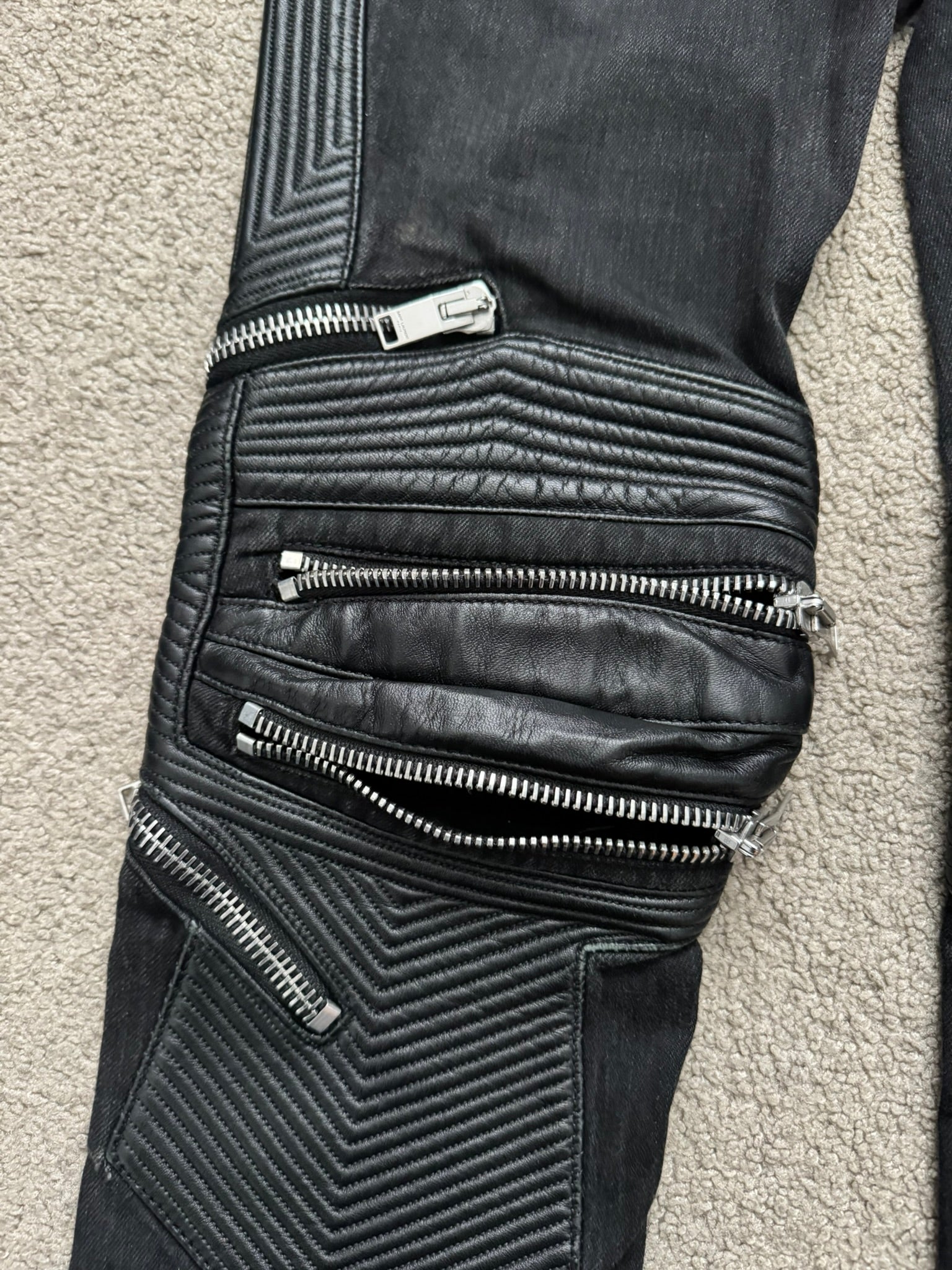 FW15 Saint Laurent by Hedi Slimane Biker Zip Knee D04 Denim Jeans