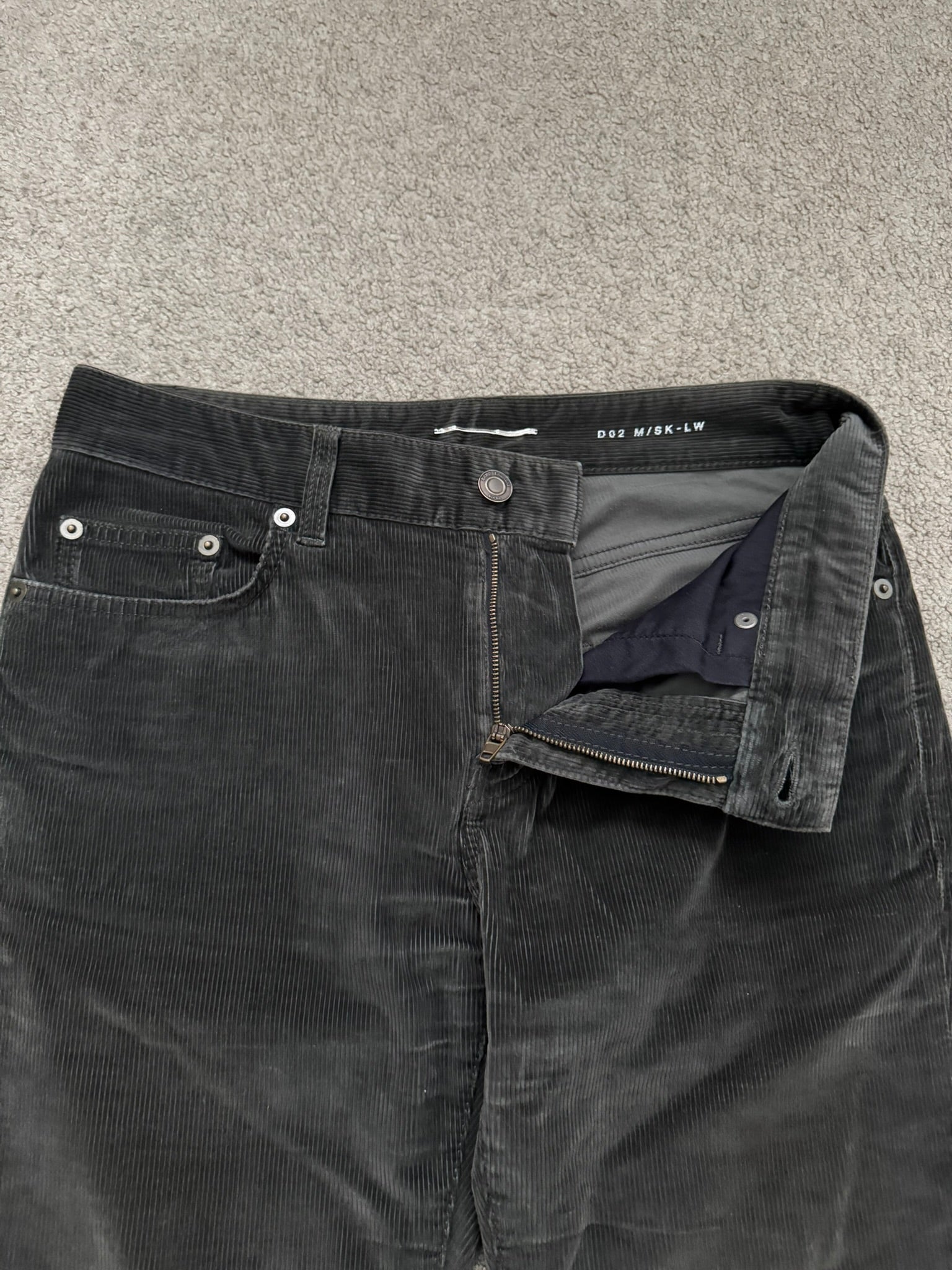 From Hedi Slimane's tenure at Saint Laurent and his FW15 collection. These black D02 skinny stretch brown corduroy pants feature a classic five pocket design and a button + zipper fly. In great condition, no real flaws. Made in Italy. Tagged a size 28.