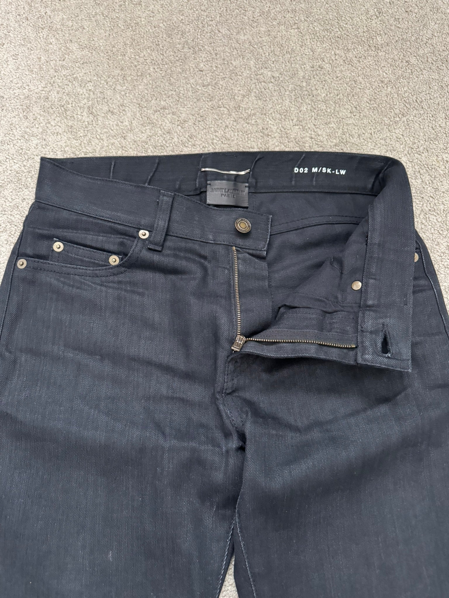 FW15 Saint Laurent by Hedi Slimane Waxed Knee Slit D02 Denim Jeans