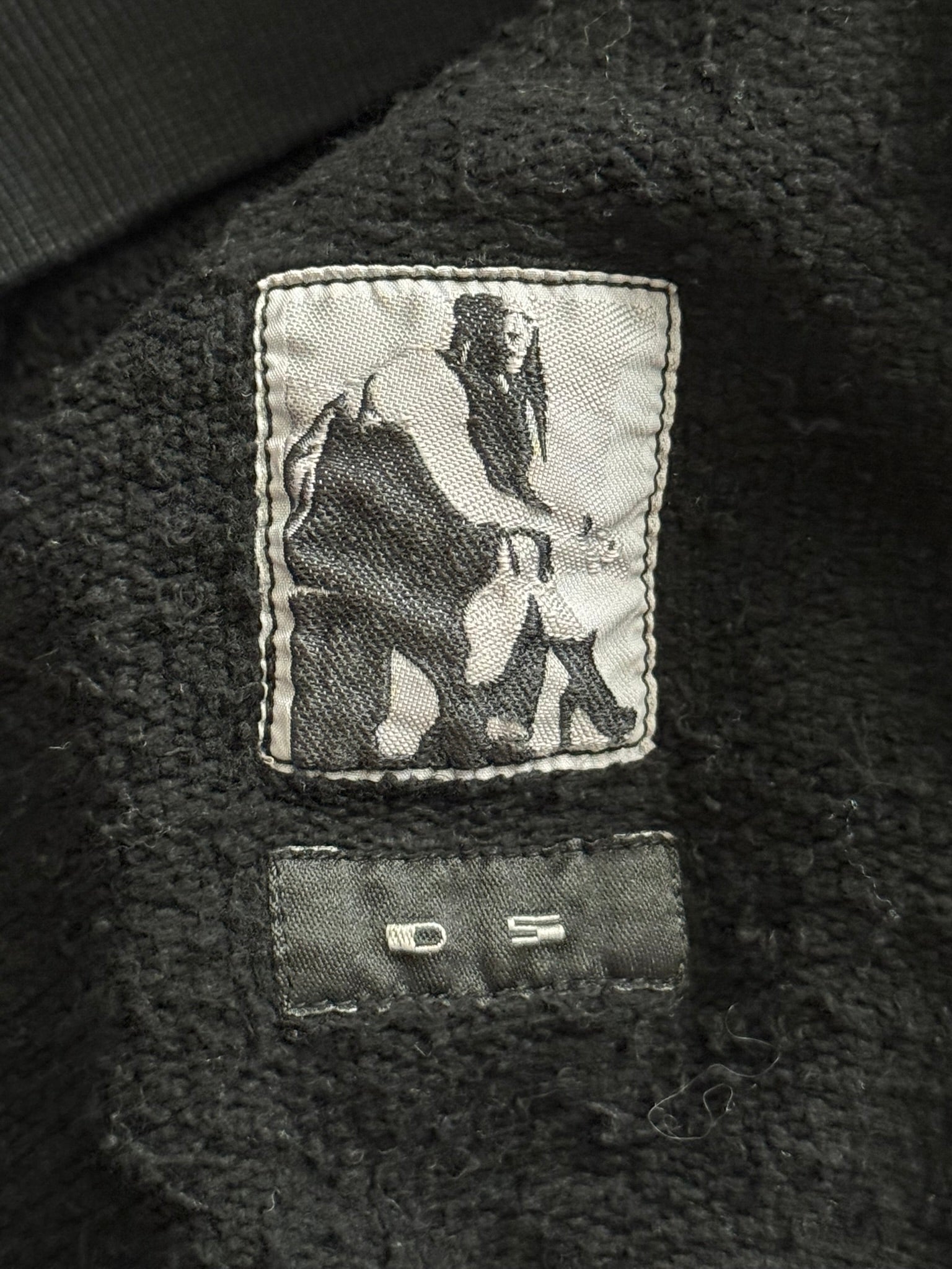 From Rick Owens's DRKSHDW line and his FW16 collection titled "Mastodon." This black crewneck sweatshirt made from their heavyweight cotton "felpa" material features their iconic bleach vomit stain detail on the front that was used throughout the season. In great condition, no real flaws as all wear is intentional. Made in Italy. Tagged a size small.