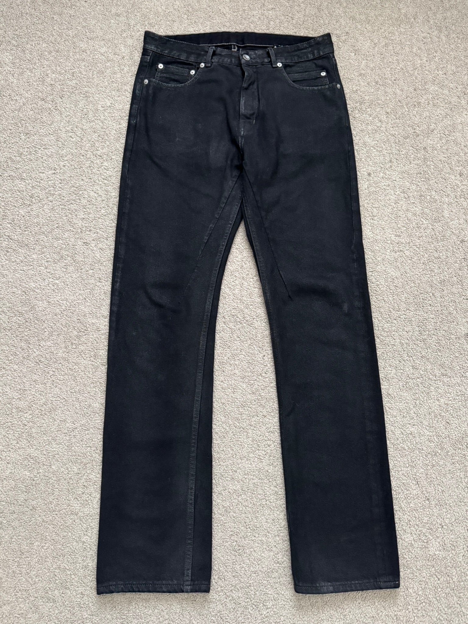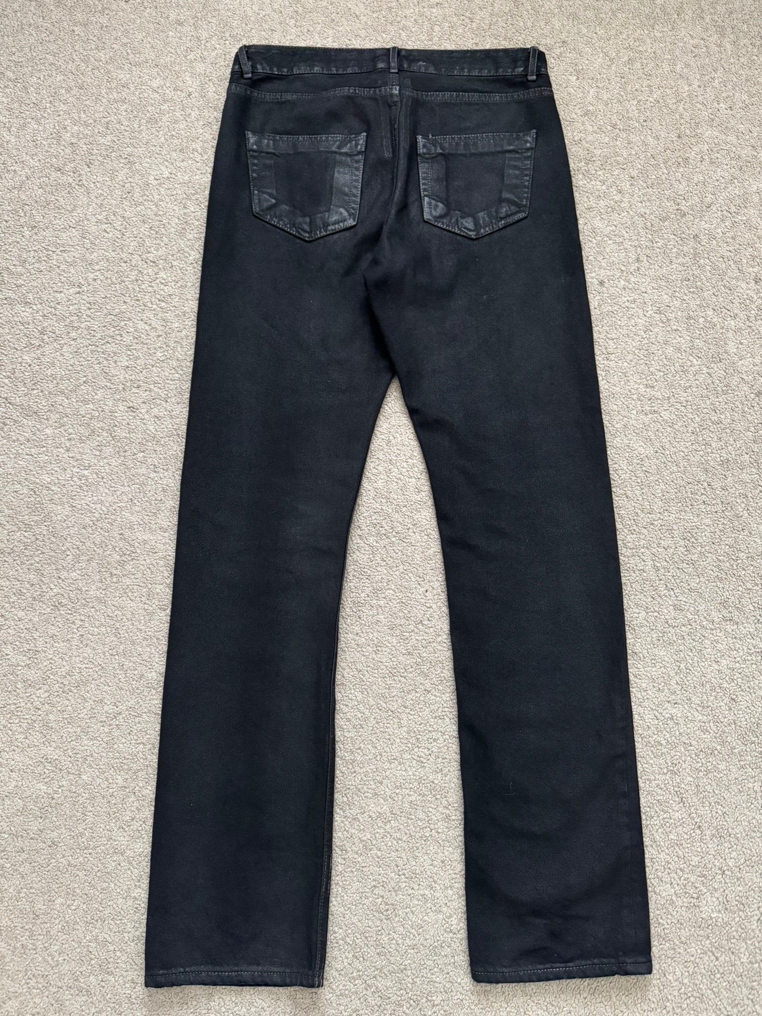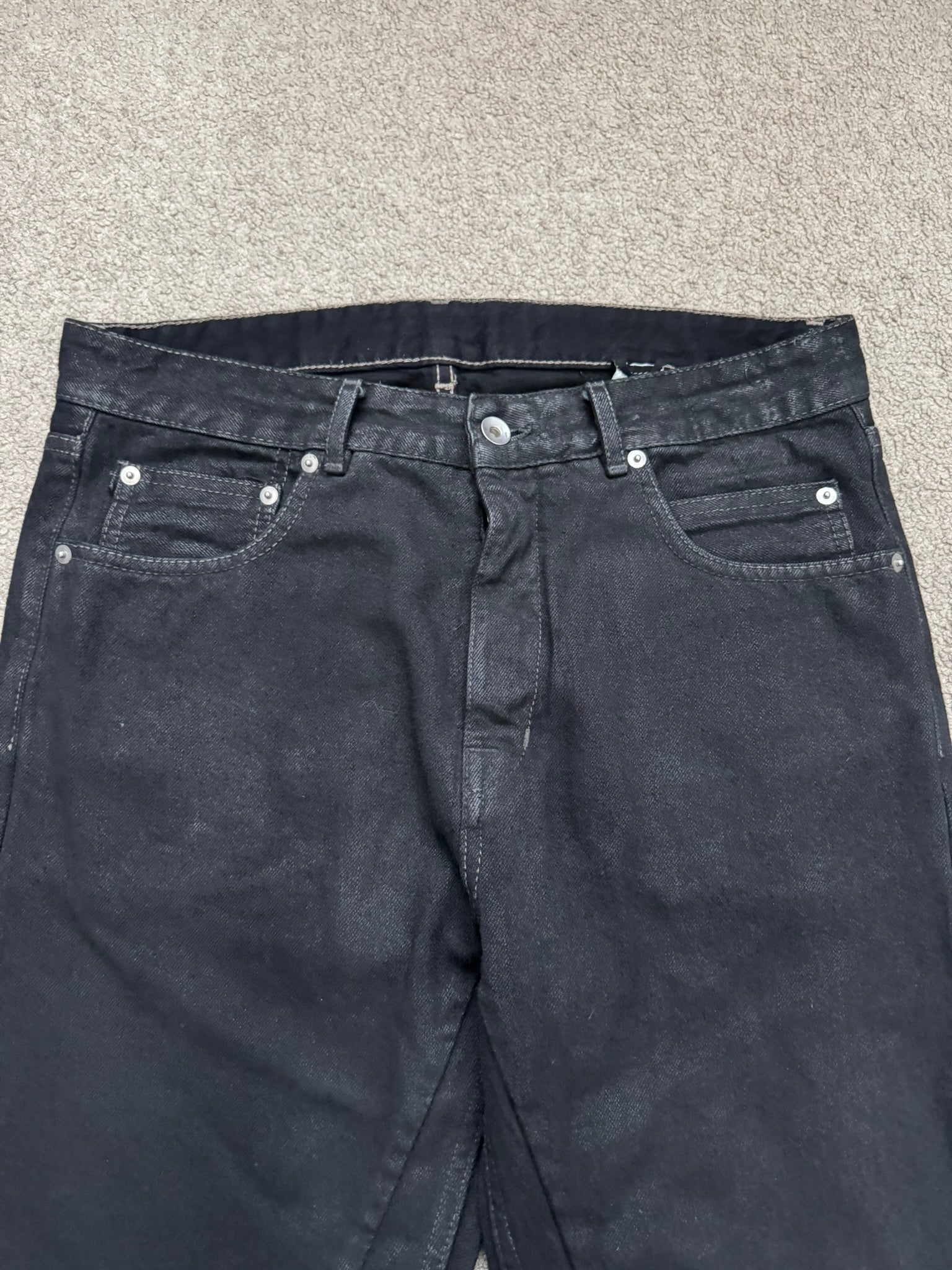 FW19 Rick Owens DRKSHDW Black Waxed Detroit Cut Denim Jeans