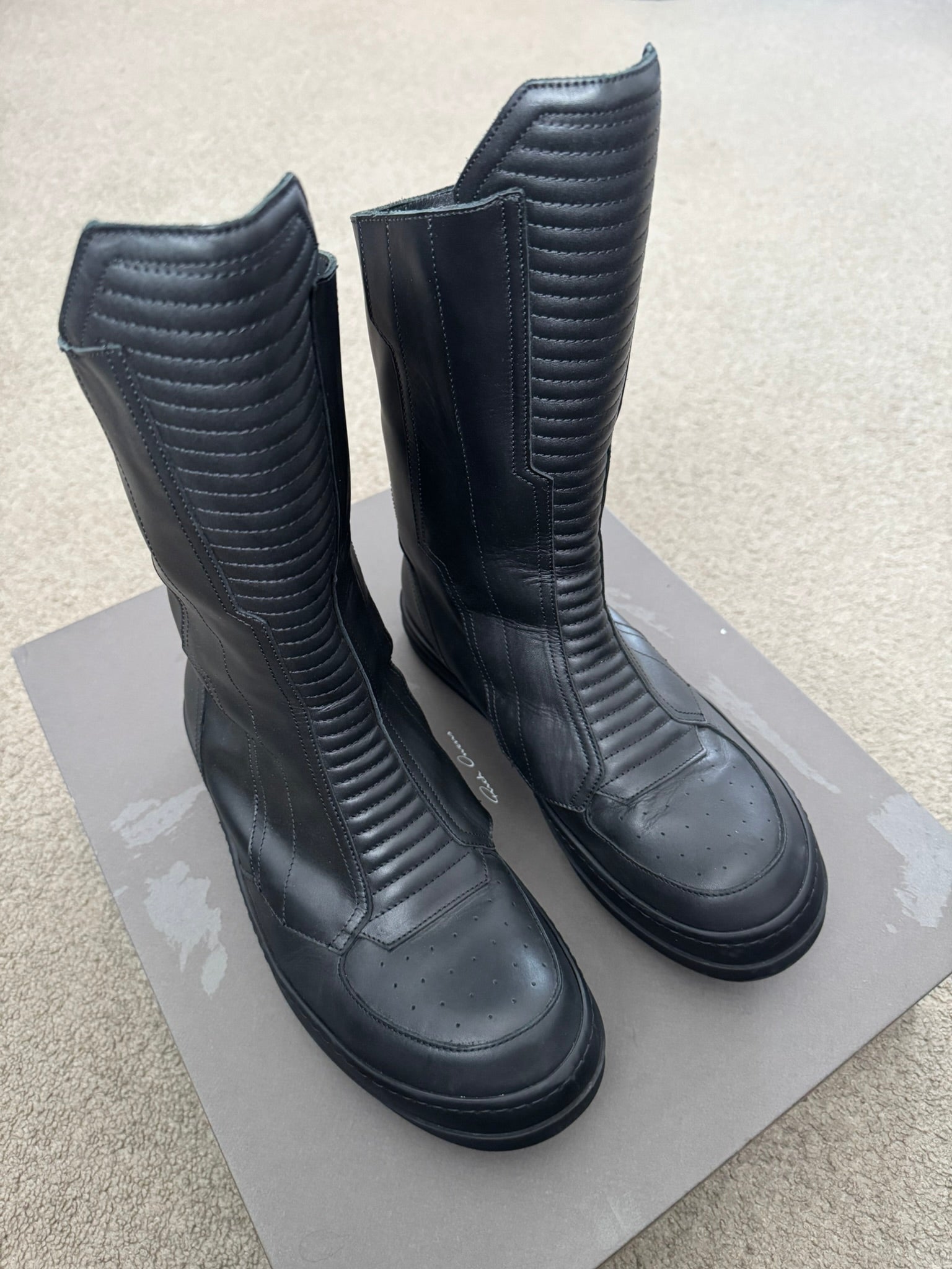 FW23 Rick Owens Mainline Black Leather High Biker "High" Sneakers