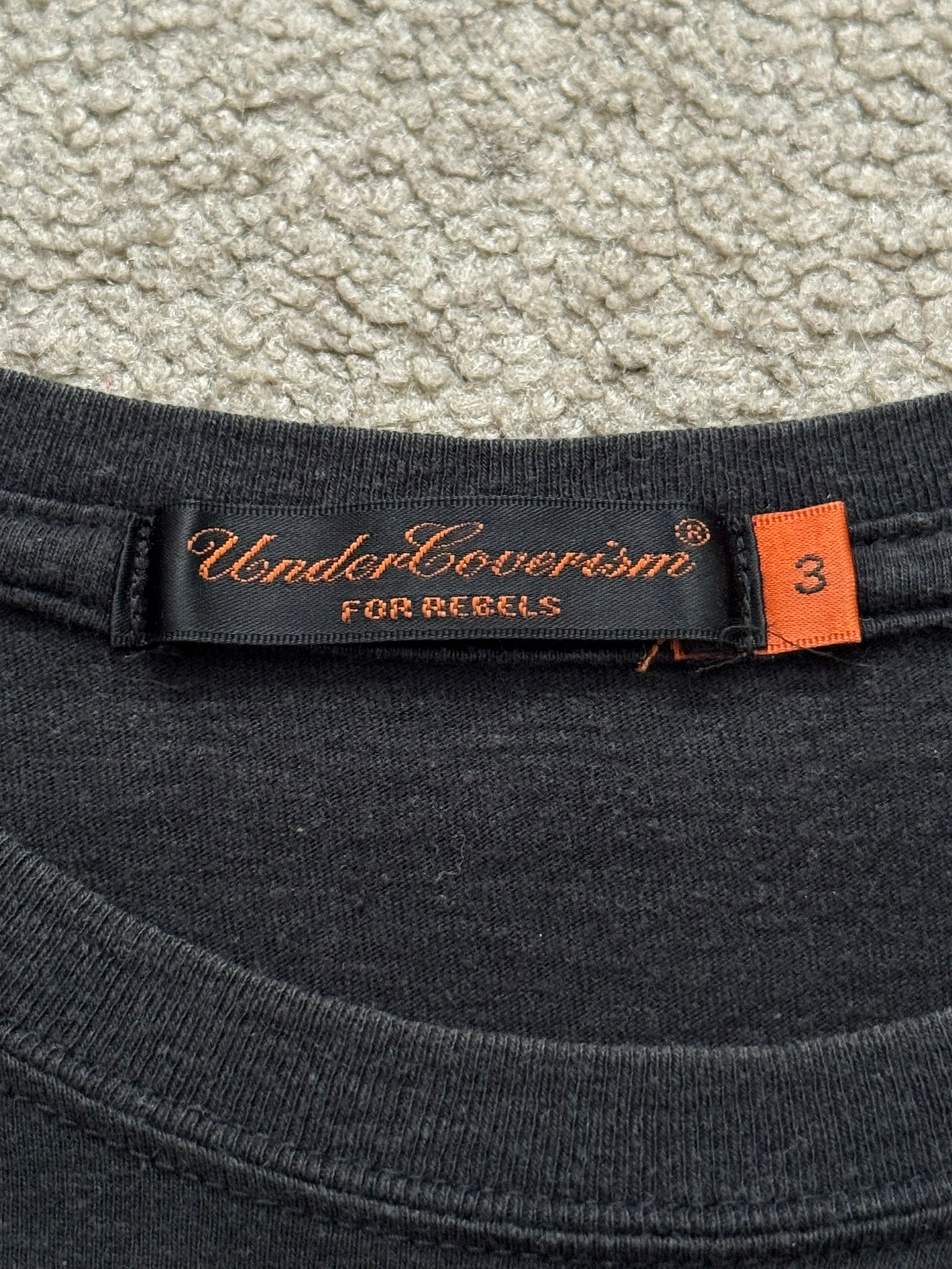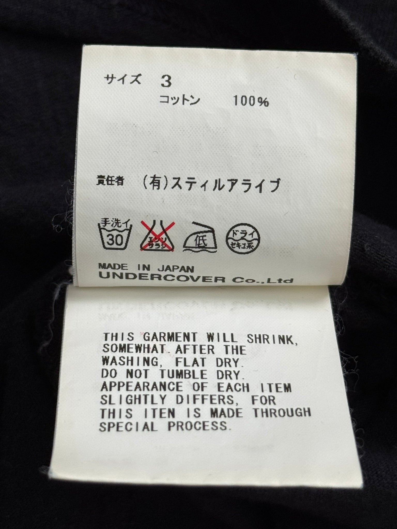 From Jun Takahashi's Undercover and Takahiro Miyashita's Number (N)ine for their respective SS06 collections titled "T" and "Welcome To The Shadow." In celebration of Number (N)ine's 9th anniversary, both brands collaborated to create this shirt that features a front graphic with the text "NUMBER IS NINE," and a back hit graphic that includes the iconic "Kosmische Musik" graphic. Shirt is produced by Undercover and was an extremely rare limited run. In great condition, no real flaws. Everything as pictured. Made in Japan. Tagged a size JP 3, measurements are listed.