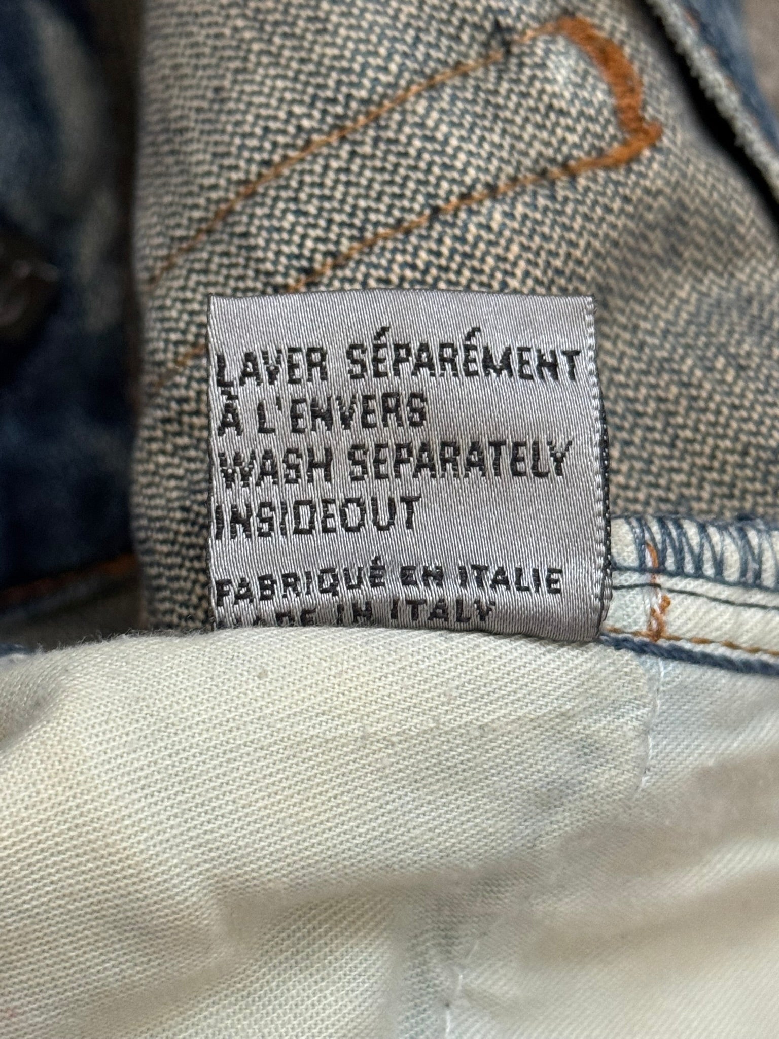 From Hedi Slimane's tenure at Dior Homme and his SS07 collection titled "We Look Good Together." These light wash denim jeans feature beautiful fading whiskering details at the back pockets (similar to the iconic "Spiderweb" denim), a button and hook fly, 5 pocket design, CD silverware on back beltloop, and darting details on back pockets. In great condition, no real flaws besides minor distressing throughout and tiny hole on one knee. Everything as pictured. Made in Italy. Tagged a size 30.