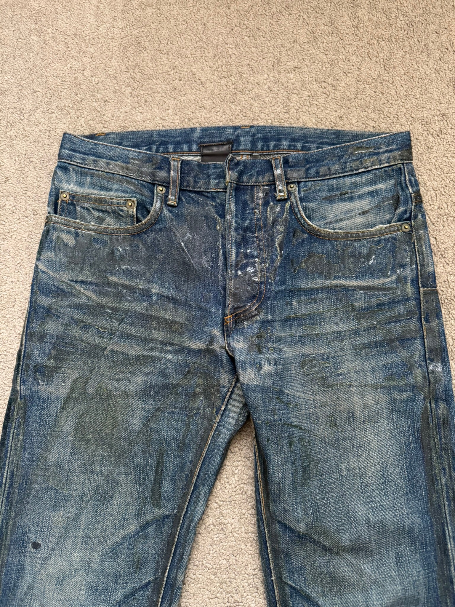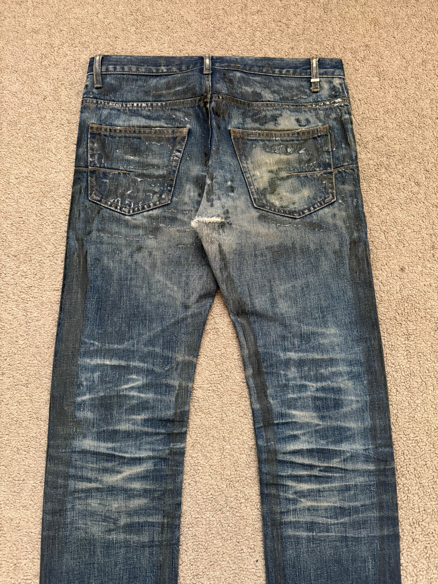 SS07 Dior Homme by Hedi Slimane Wax Luster Clawmark Denim Jeans