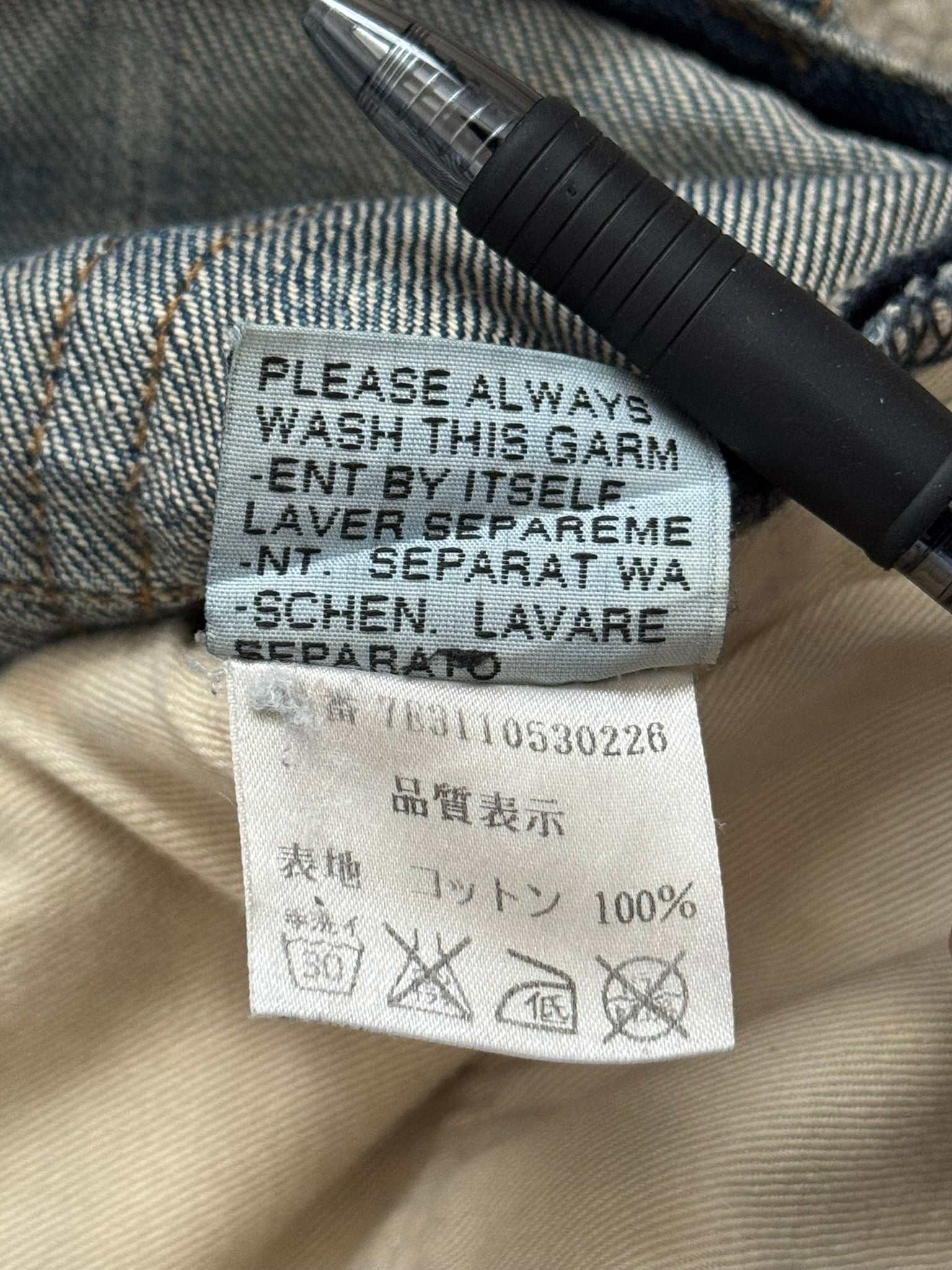 From Hedi Slimane’s tenure at Dior Homme and his SS07 collection titled “We Look Good Together.” These reissue medium wash blue denim jeans feature a special sporadic wax coating throughout (first featured in their AW03 “Luster” collection, hence the name), the iconic clawmark distressing detail on one of the knees, a button and hook fly, 5 pocket design, CD silverware on back beltloop, and darting details on back pockets. In good condition, repairs at crotch that are hardly noticeable when worn and minor distressing throughout; no other real flaws. Everything as pictured. Made in Japan. Tagged a size 27.