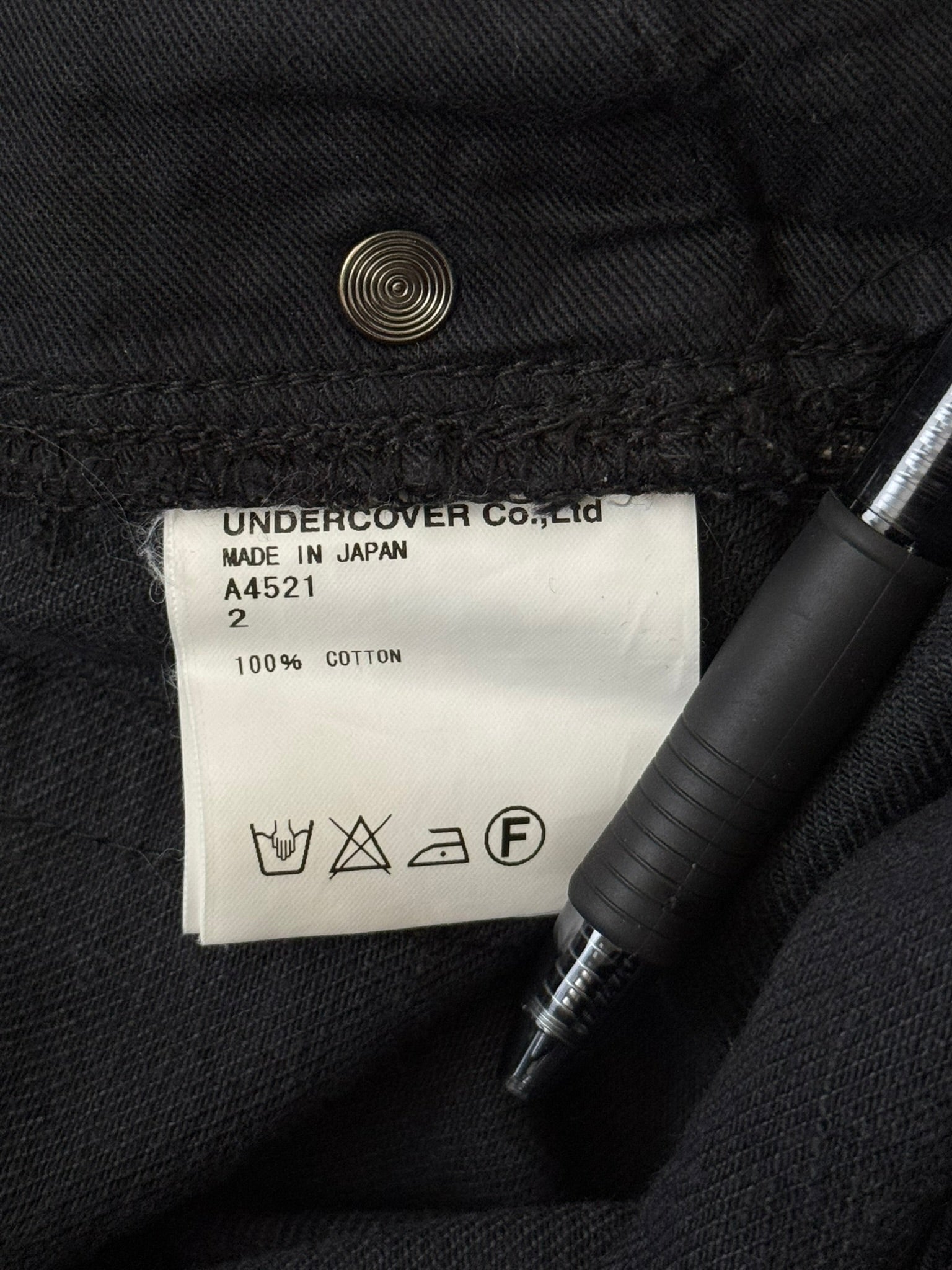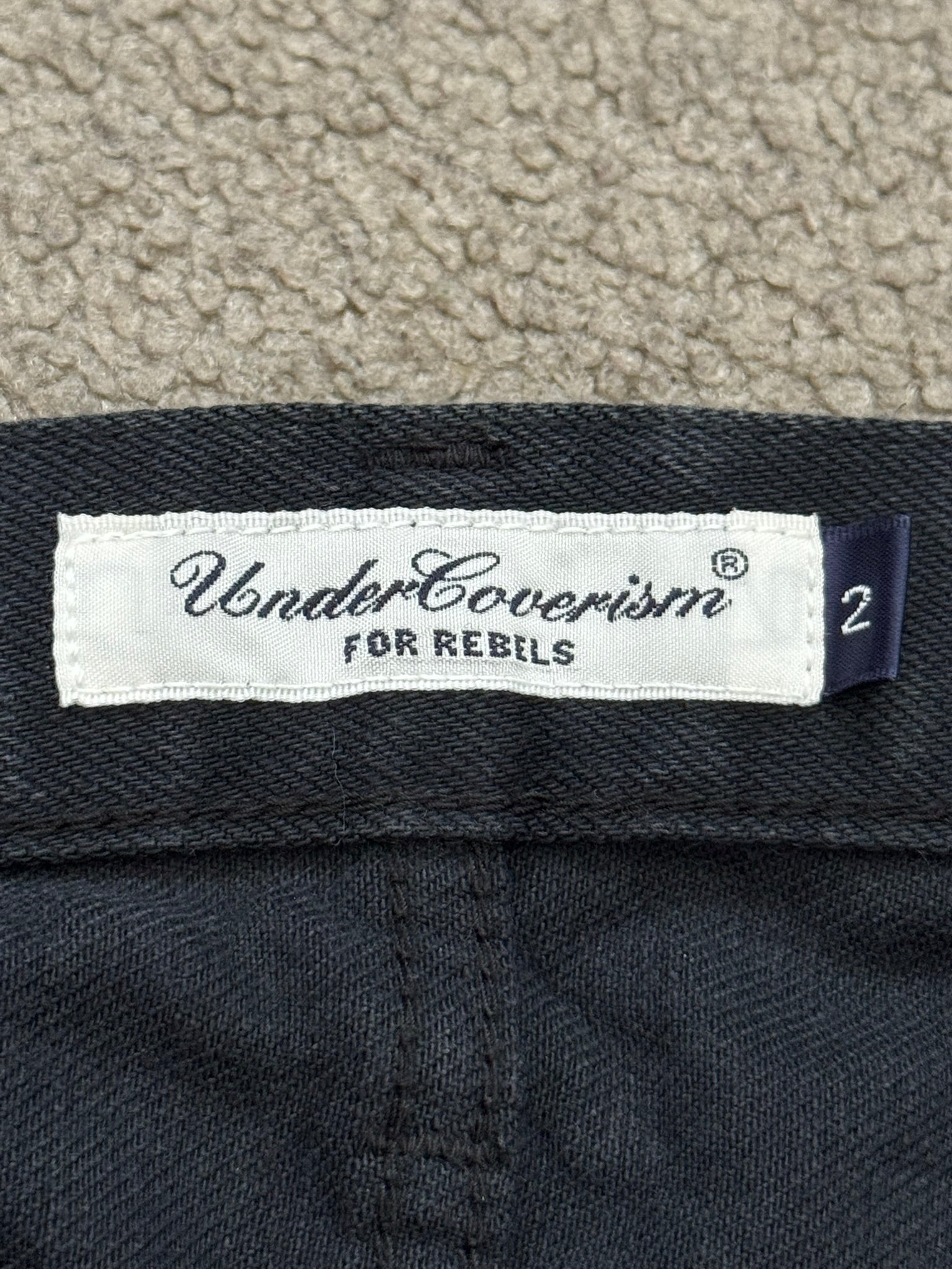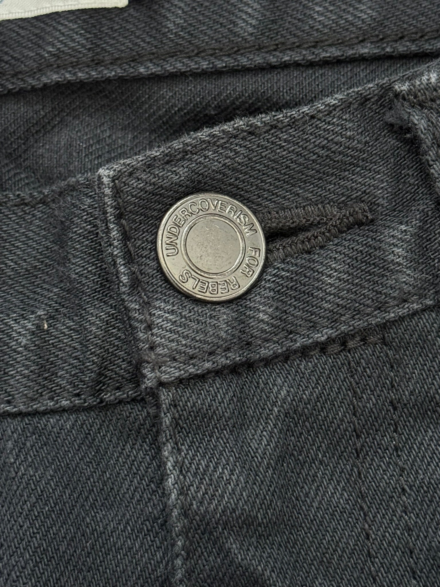 From Jun Takahashi’s Undercover and their SS08 collection titled “Summer Madness.” These black selvedge denim jeans feature the iconic Patti Smith lightning bolt on the knee, side fringe tassel details, red logo patch on the back, five pocket construction, a button + zipper fly, and a diamond grid pattern on the inside that can be seen when cuffed. In great condition, no real flaws. Made in Japan. Tagged a size 2.