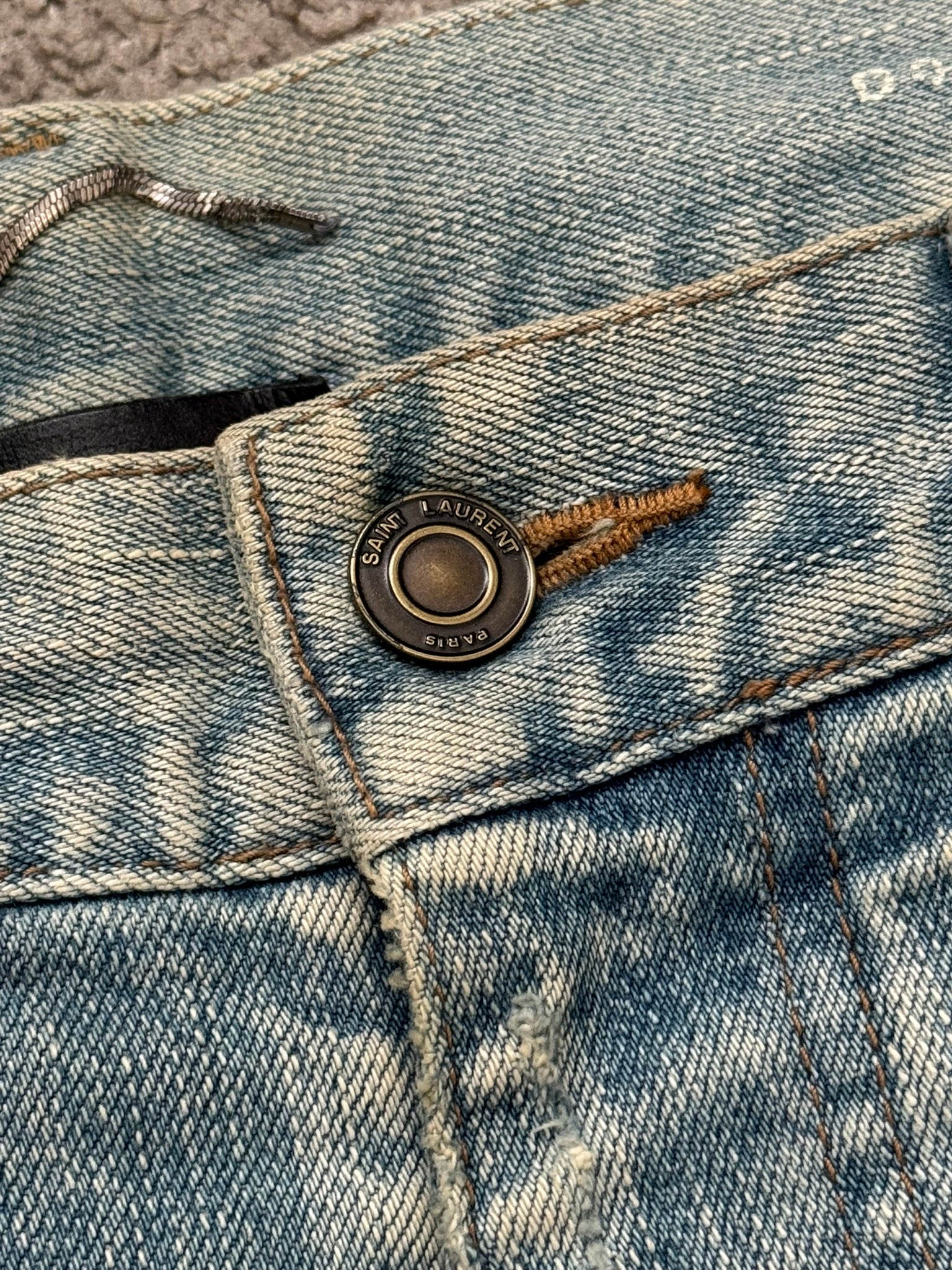 SS16 Saint Laurent by Hedi Slimane Mudwash Crash Distressed Denim Jeans