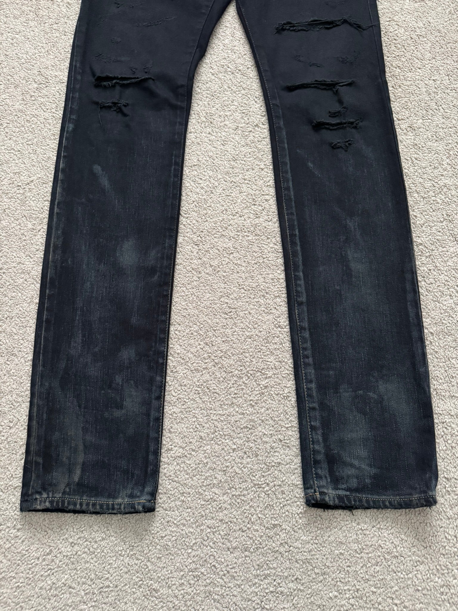 SS16 Saint Laurent by Hedi Slimane Oil Stain Distressed Crash Denim Jeans