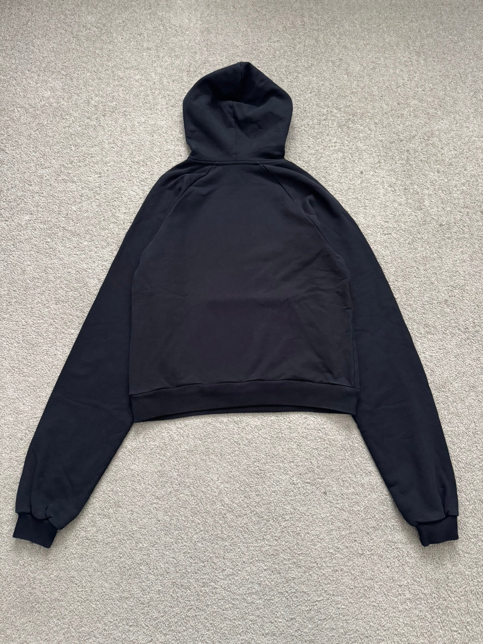 From Demna’s Balenciaga and his SS20 collection. This black raglan style hoodie features their Balenciaga "Mode" graphic logo on the front, a kangaroo pocket, and elongated sleeves. In good condition, no real flaws besides minor tears at pockets and little repair on back sleeve. Made in Portugal. Tagged a extra small.