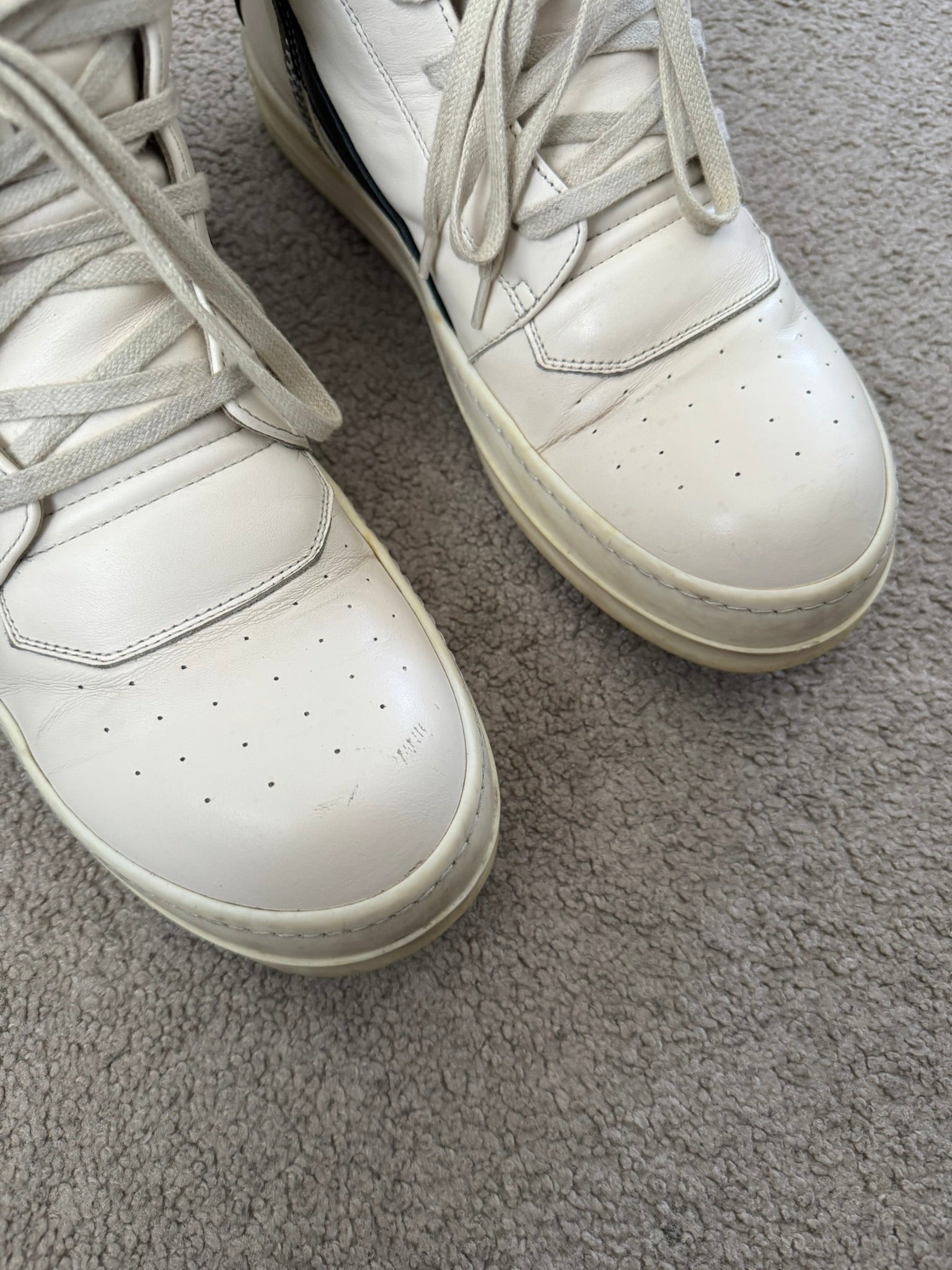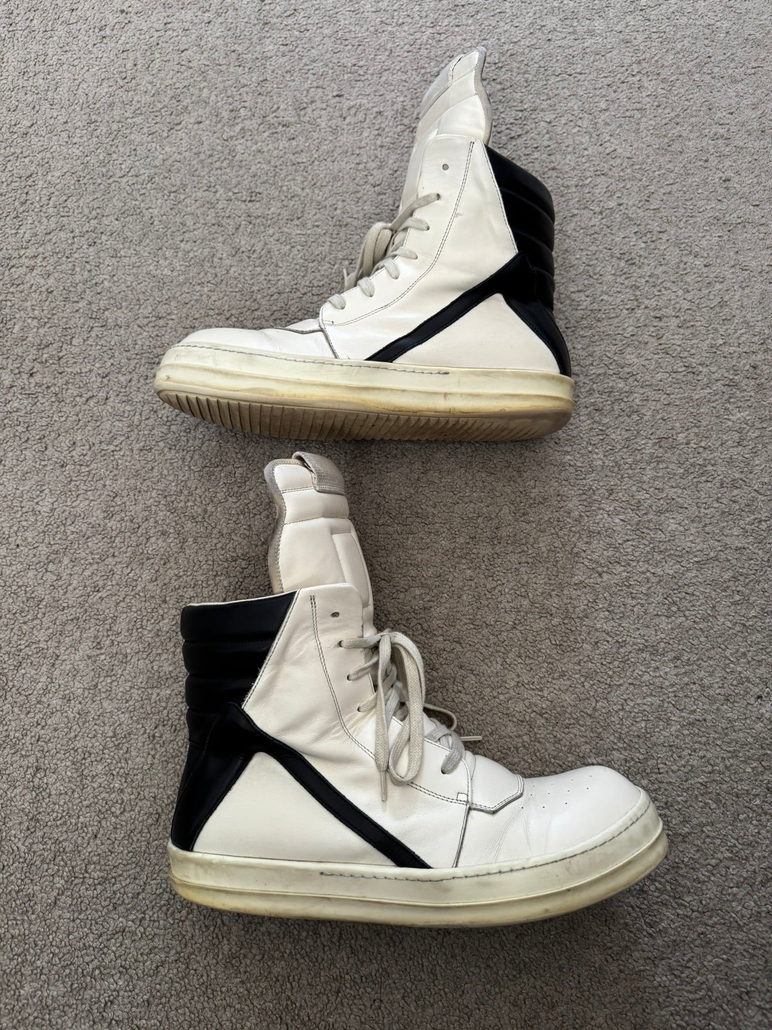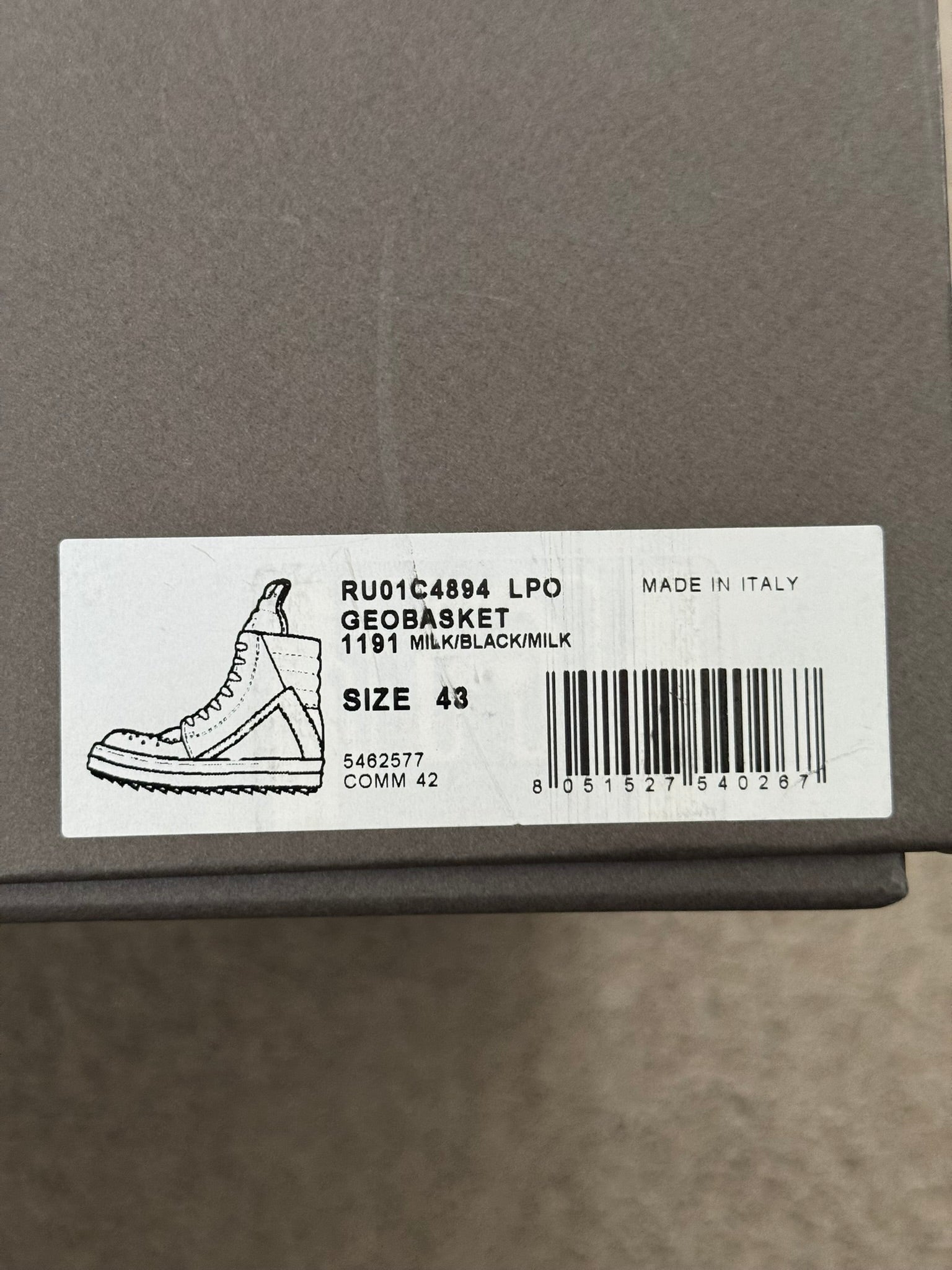 SS23 Rick Owens "EDFU" Milk & Black Geobasket High Top Sneakers