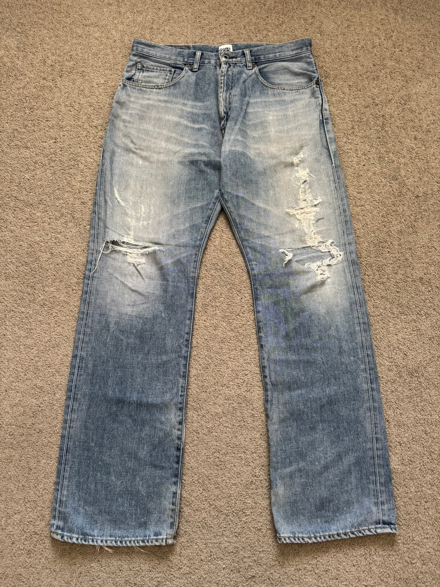 Vintage BAPE "Bathing Ape" Text Logo Patch Denim Jeans